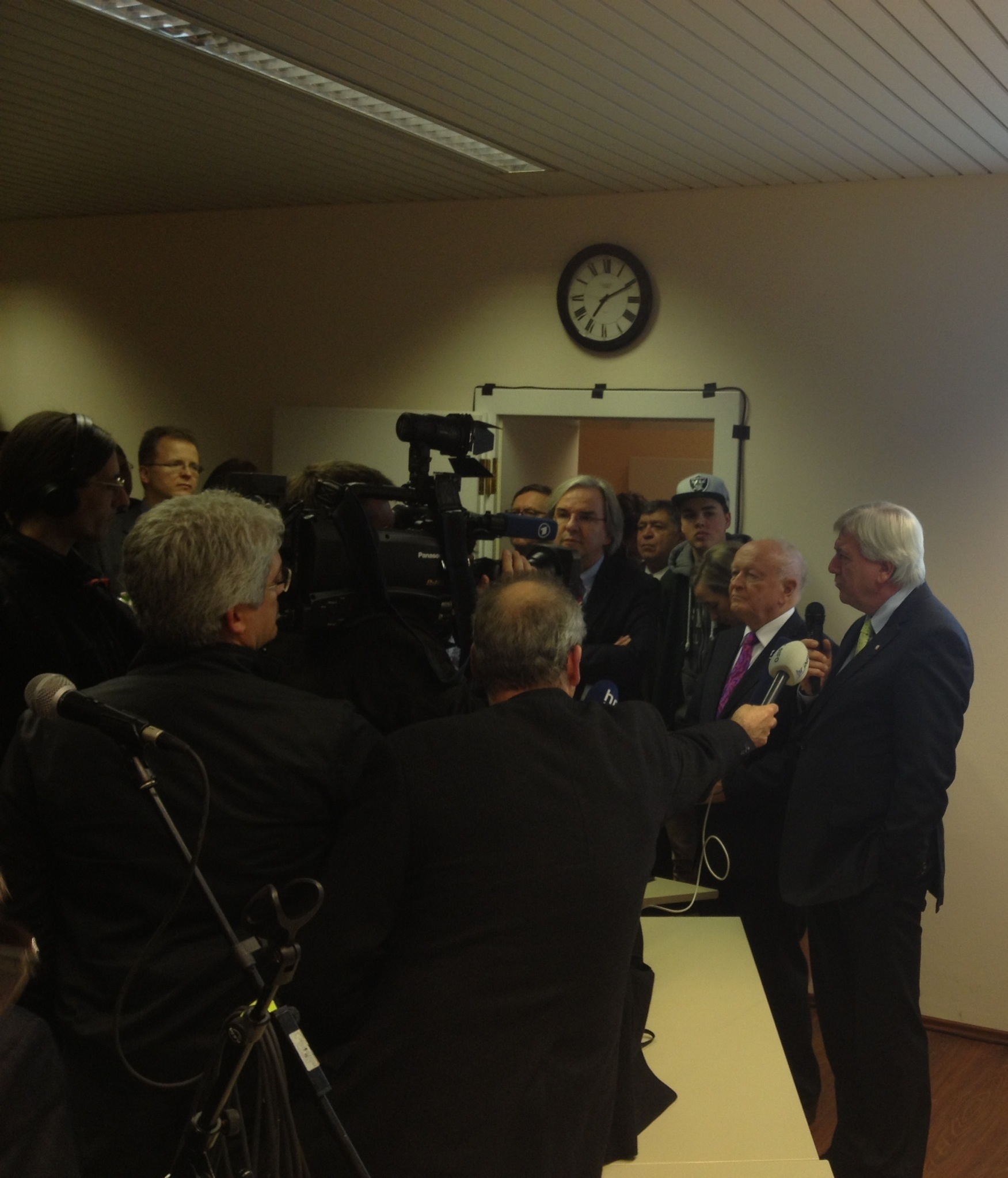 Zur CDU-Wahlveranstaltung ins Rathaus kamen Ministerpräsident Volker Bouffier und Bundesministerin Kristina Schröder neben örtlichen CDU-Größen. MP Bouffier sagte: „Helmut, Du warst immer einer von uns und Du bleibst einer von uns. OB Dr. Helmut Müller war für Wiesbaden eine großartige Zeit.“
