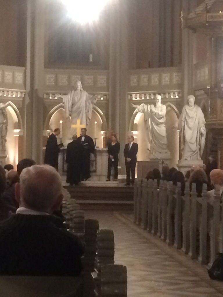 Wiesbaden, 26. März 2015 – „Fürchte dich nicht, sondern rede und schweige nicht! Denn ich bin mit dir.“ Mit diesem Bibelwort verabschiedete sich heute Dr. Roger Töpelmann, Pfarrer und Pressesprecher der Evangelischen Kirche Wiesbaden, während eines Gottesdienstes in der Wiesbadener Marktkirche in den Ruhestand. Zum Abschieds-Gottesdienst erschienen zahlreiche Weggefährten aus Kirche, Stadt, Presse und Politik. Propst Oliver Albrecht lobte in seiner Verabschiedungs-Rede Töpelmanns Arbeit: „Es drängt ihn nicht auf die Bühne, sondern er öffnet den Vorhang für andere.“ Dekan Dr. Martin Mencke dankte Töpelmann für seine unermüdliche Tätigkeit: „Lieber Roger, wenn das Licht am Schlossplatz um zehn Uhr abends noch an war, warst Du noch im Büro. Du warst auch technisch immer up to date, das Dekanat ist nun eines der ersten mit einer eigenen App.“ Verabschiedungsgeschenk: Ein Brunch im Adlon in Berlin, ein Buchgutschein und ein extra für Töpelmann gedruckter Wiesbadener Kirchen-Kurier. Bürgermeister Arno Goßmann übermittelte zum Abschluss Grüße von Oberbürgermeister Sven Gerich und lobte Töpelmanns Gespür: „Ich hatte immer dasGefühl, so wie die Kirche sich äußert, das hat seinen Sinn.“ Im Anschluss an den Gottesdienst fand ein Empfang im Haus an der Marktkirche statt. Stefan Schröder, Chefredakteur des Wiesbadener Kuriers und Vorstand des Wiesbadener Presseclub sagte beim Empfang zu Töpelmann: „Ganz tollen Dank für die großartige Zusammenarbeit. Herr Dr. Töpelmann, Sie sind und bleiben eine Marke.“