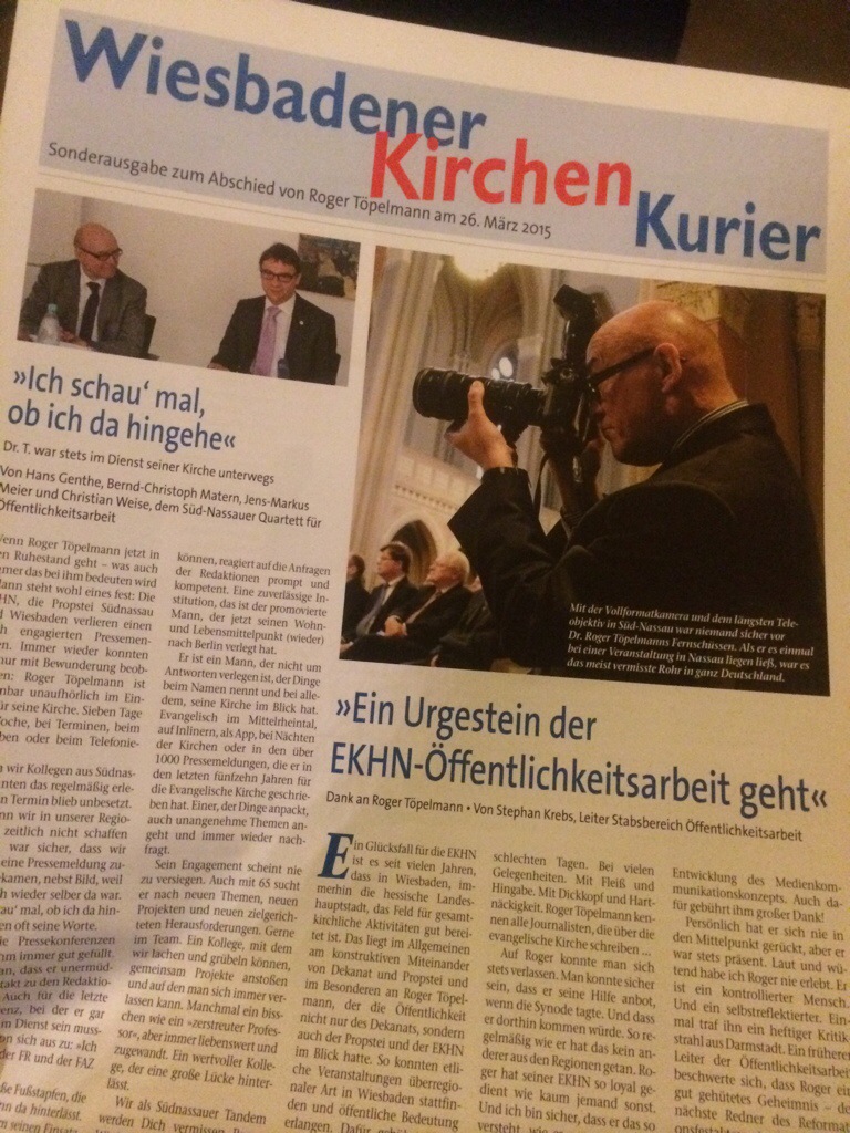 Zur Verabschiedung von Mitarbeitern und Weggefährten erstellt: Der Wiesbadener Kirchen-Kurier für Dr. Roger Töpelmann