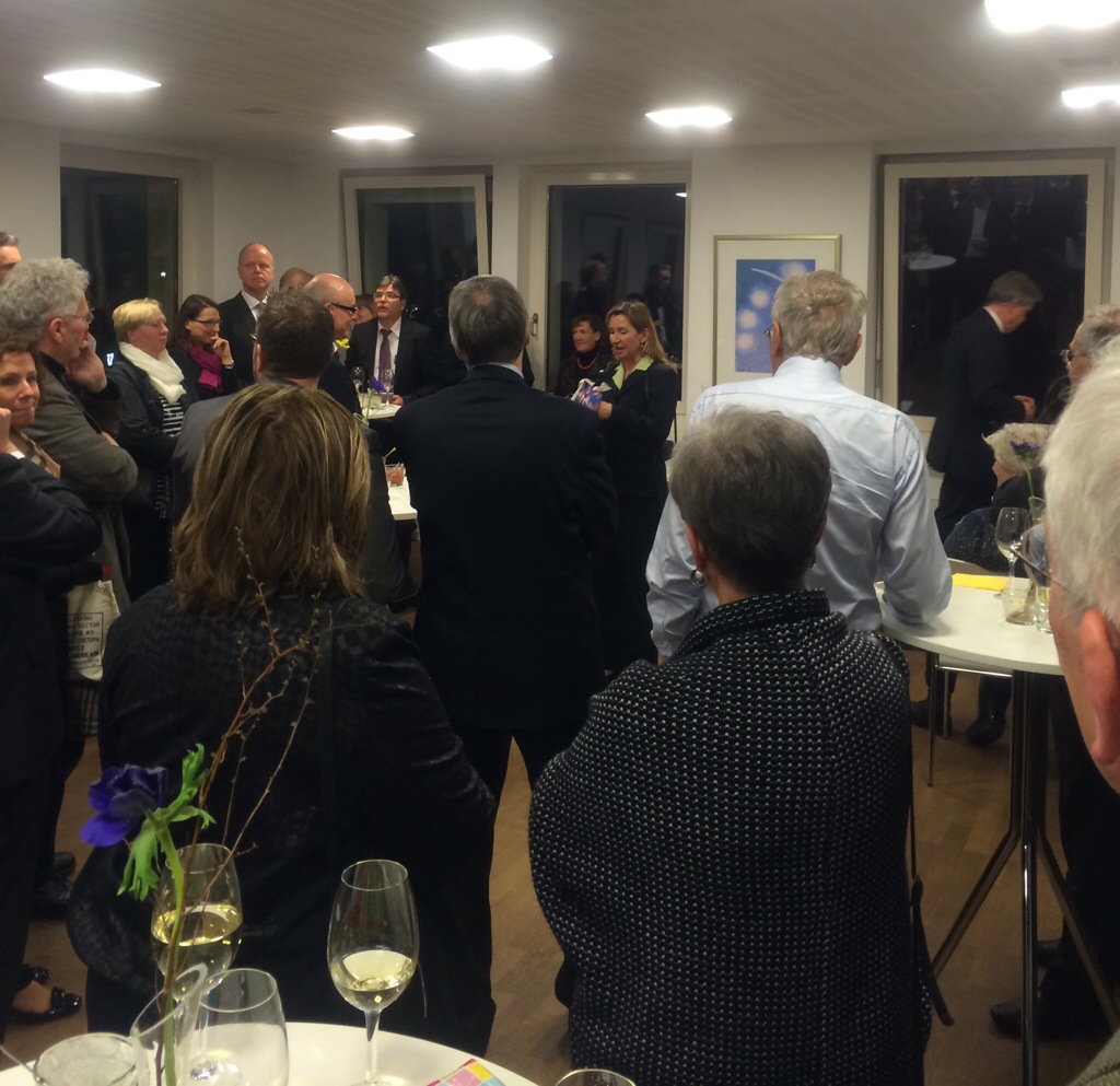 Empfang im Haus an der Marktkirche: Stefan Schröder, Chefredakteur des Wiesbadener Kurier, dankte Dr. Roger Töpelmann für die hervorragende Zusammenarbeit.