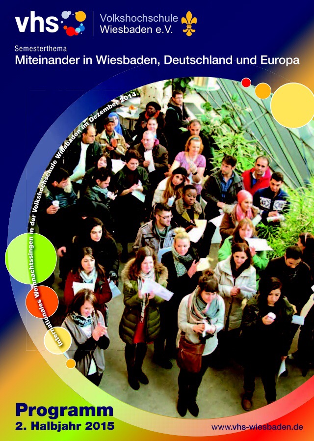 Wiesbaden, 5. Juni 2015 – Die Volkshochschule (VHS) Wiesbaden startet in diesem Sommer voll durch: Diese Woche wurde nicht nur die Website neu gestaltet, sondern auch das Kursheft in frischem Design gedruckt. Auf 244 Seiten finden Neugierige nicht nur das komplette Programm in der Übersicht, sondern auch neue schöne Fotos von Kursleitern und -Teilnehmern, Erklärungen und Details. Von IT-Projektmanagement bis Tennis ist alles dabei, einsortiert in acht Kernbereiche: Gesellschaft und Alltag, Kultur und Kreativität, Beruf und Karriere, Grundbildung, Sprachen, Gesundheit und Natur, Akademie für Ältere und junge VHS. Semesterthema diesmal ist: Miteinander in Wiesbaden, Deutschland und Europa. Interkulturelle Kompetenz steht deshalb ebenso auf dem Kurs-Programm wie Deutsch als Zweitsprache und die Folgen der Völkerwanderung.