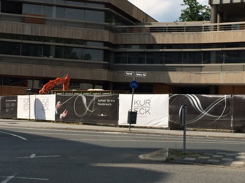 Wiesbaden, 18. Juni 2015 – Oberbürgermeister Sven Gerich (SPD) freut sich über den Start der Bauarbeiten am Kureck. Die IFM Immobilien AG hatte heute zum offiziellen Beginn der Arbeiten auf die Baustelle eingeladen. Gerich lobte: „Mit der Sanierung des denkmalgeschützten Altbaus an der Sonnenberger Straße – vielen Wiesbadenerinnen und Wiesbadener noch als ‚Mövenpick Restaurant‘ in sehr guter Erinnerung – und der rückseitigen Errichtung eines Neubaus für das Hessische Sozialministerium entsteht vis-à-vis der Staatskanzlei ein kleines Regierungsviertel. Dies ist eine sehr gute Nutzung für diesen Teil des Gesamtareals“. Die CDU-Rathausfraktion begrüßt ebenfalls den Baustart am Wiesbadener Kureck „nachdem das Areal nun seit über vier Jahre leer steht und sich zunehmend als innerstädtischer Brand- und Gefahrenherd entwickelt hatte“. Der stellvertretende Fraktionsvorsitzende und planungspolitische Sprecher der CDU-Rathausfraktion Hans-Martin Kessler (CDU) erklärte: „Wir sind davon überzeugt, dass die IFM Immobilien AG Ihre Verantwortung für Wiesbaden und den attraktiven Standort Kureck jetzt ernst nimmt und das präsentierte städtebauliche Konzept zügig umsetzt.“ Kessler lobte das neue städtebauliche Konzept („Mix an qualitätvollen Wohn-, Arbeits- und ansprechenden Aufenthaltsmöglichkeiten“), die direkte Wegeverbindung zur Prinzessin-Elisabeth-Straße und zusätzlich zum Adolfsberg und den geplanten begrünten Vorplatz mit Brunnen.