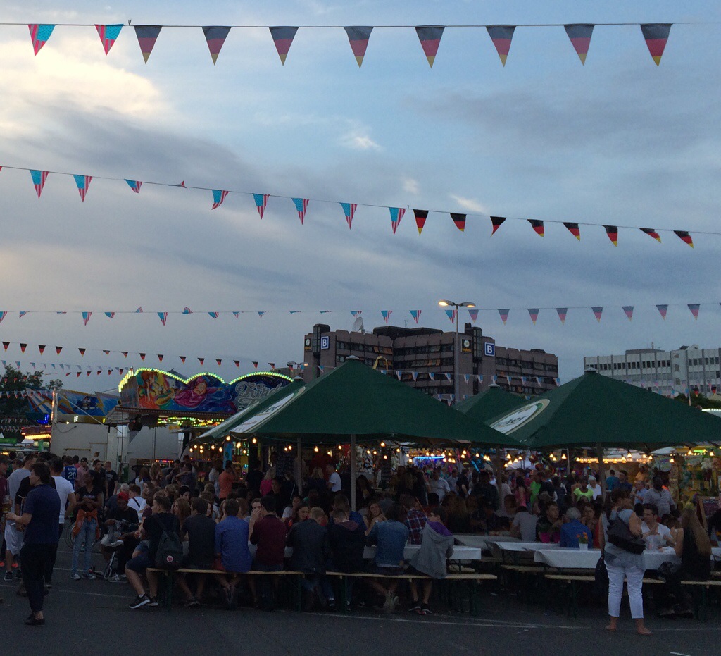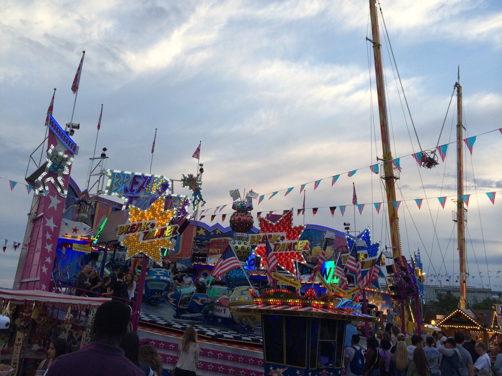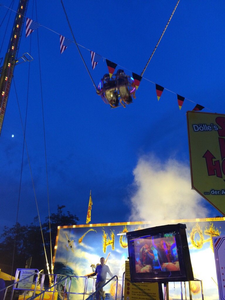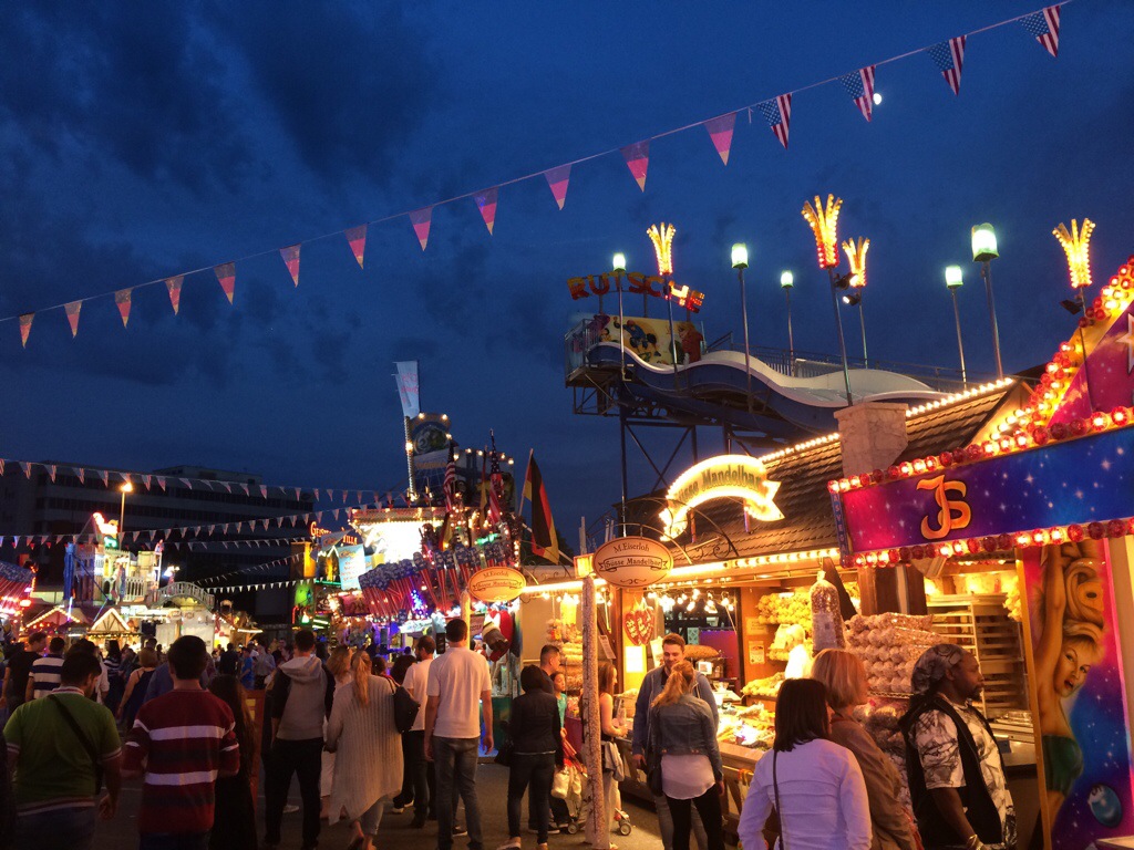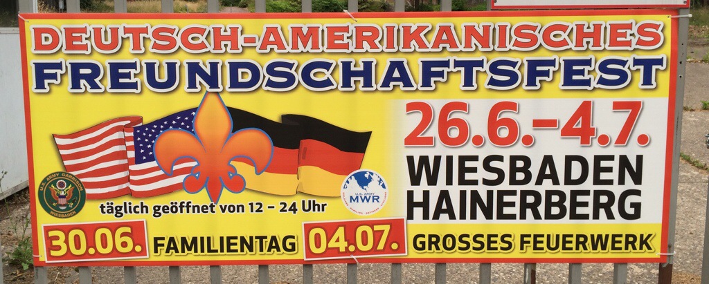 Wiesbaden, 27. Juni 2015 – Das Deutsch-Amerikanische Freundschaftsfest auf dem Hainerberg hat gestern Abend offiziell begonnen und die Wiesbadener feiern bis zum 4. Juli kräftig mit. Auf dem Festplatz (Haupteingang Berliner Straße, gegenüber der Brita-Arena), ist viel mehr geboten als im vergangenen Jahr: Sausen im Auto-Scooter, wirbeln im Break-Dancer (je Fahrt 3 Euro), überschlagen im Top-Spin (4 Euro), oder sich im „Hot Shot“ in einer Stahlkugel an Bungee-Seilen mit 160 km/h in die Luft katapultieren lassen (18 Euro pro „Flug“) – alles ist drin. Wer dann auch von Geisterbahn und Wasserrutschen genug hat, darf deutsch-amerikanisch speisen: