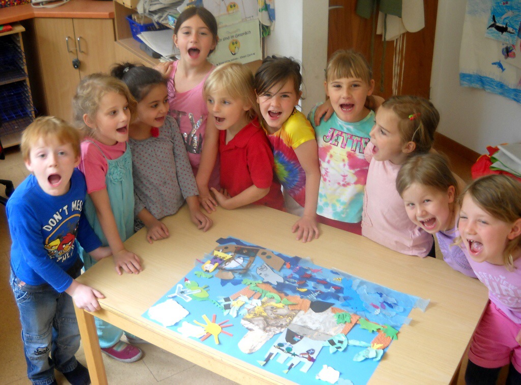 Wiesbaden, 28. Juni 2015 – Sie sind kreativ, konzentriert und voll bei der Sache: 21 Kita-Kids haben ein Buch getextet und illustriert, für 15 Euro ist es in ihrer Kita in Bierstadt zu haben. Was manche Leute nie schaffen, erledigten die Vorschulkinder (Alter: 6 Jahre) innerhalb von vier Wochen im Juni. Die Texte diktierten die Kids „ihrer“ Beate Unverzagt direkt in die PC-Tastatur. Unverzagt, Projektleiterin Vorschulerziehung der Evangelischen Kita Wiesbaden-Bierstadt, sagt: „Die Ideen entwickelten die Kinder zusammen direkt neben mir am PC und diktierten mir dann die Texte. Ich bin nur die Schreibmaschine“. Außerdem haben die 21 Kids noch fleißig illustriert, allein am Titelblatt arbeiteten gemeinsam zehn der Kids.