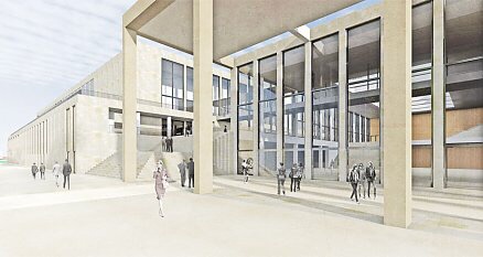 Derzeit laufen die Erdverbesserungsarbeiten; sie sollen zügig umgesetzt werden. Der Rohbau ist dann der nächste Schritt und wird für jedermann sichtbar: Sechs Kräne ragen in wenigen Tagen in die Luft. Zudem entsteht ein Baustellendorf mit 30 Containern.