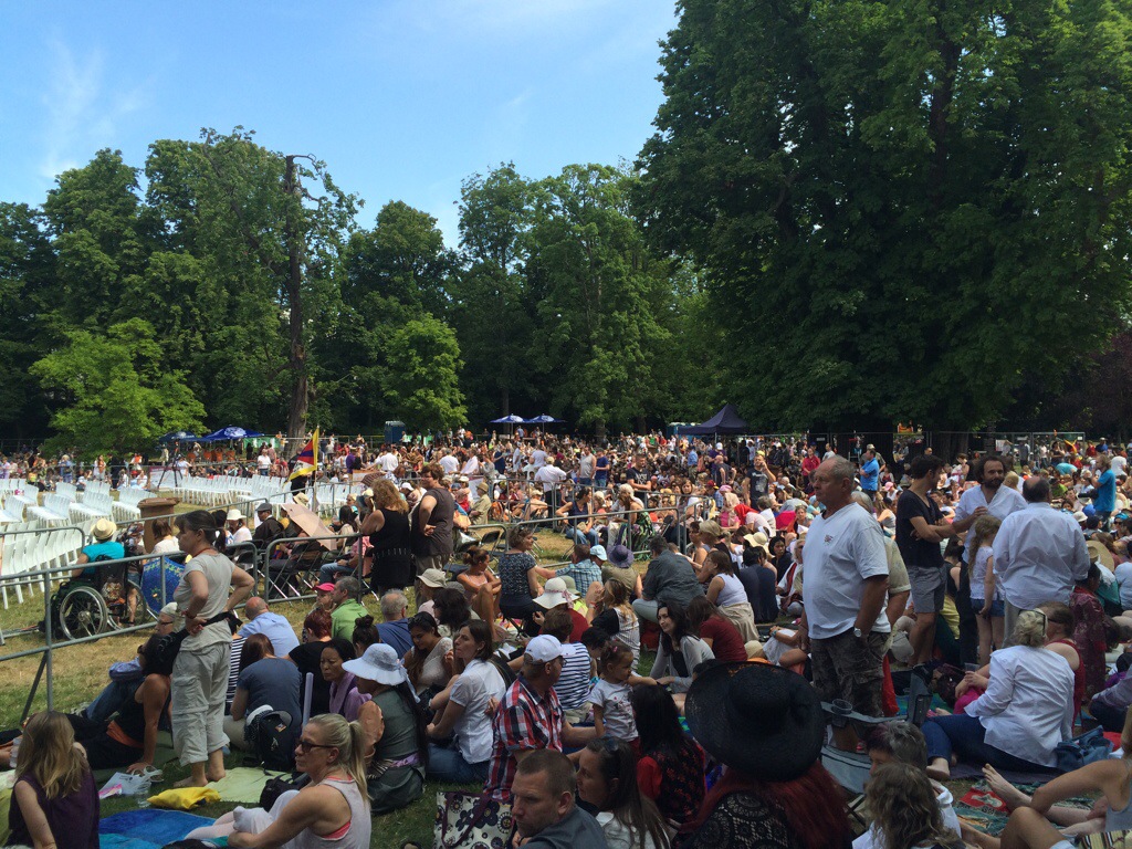 Weiter hinten im Kurpark hört man davon nix, um 10 Uhr ist Einlass, gegen 11.30 Uhr ist der Park schon gut gefüllt, es herrscht friedliche Ruhe wie bei einem gemütlichen Sonntags-Picknick. Die Kontrollen sind gründlich: Taschen werden geöffnet, Fluchtwege freigemacht, die Zuschauer-Bereiche sind mit Gittern abgetrennt. „Solchen Heckmeck hat es beim letzten Mal nicht gegeben“, sagt eine Besucherin „da waren auch weniger Leute da“.