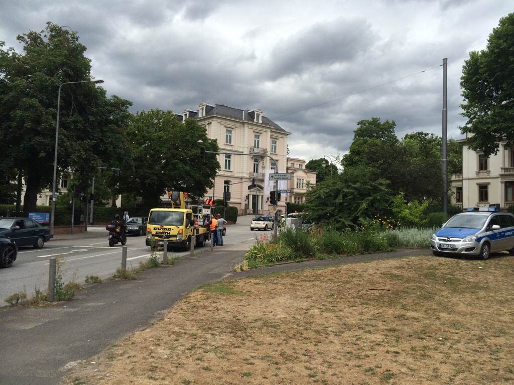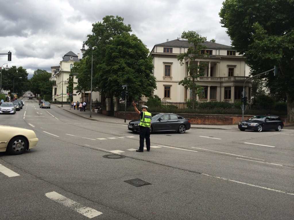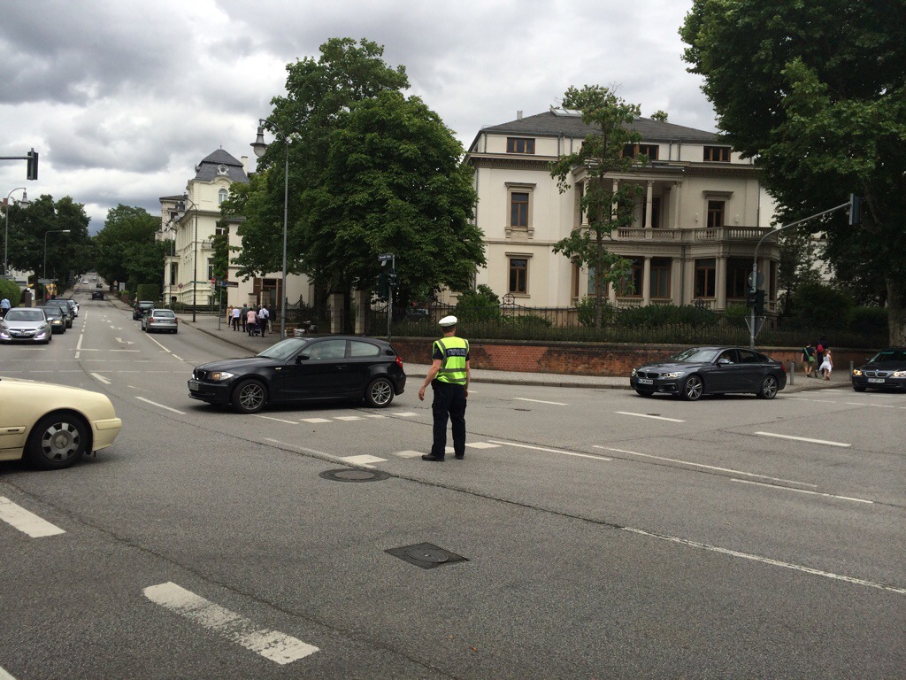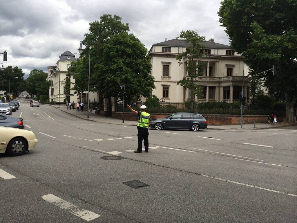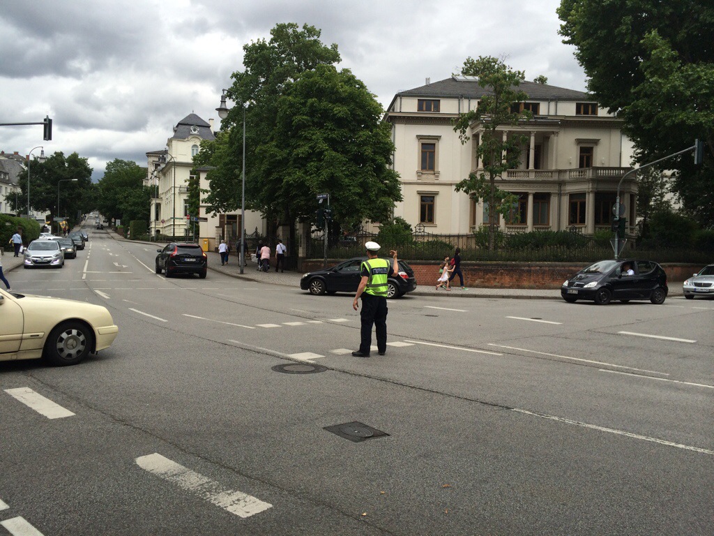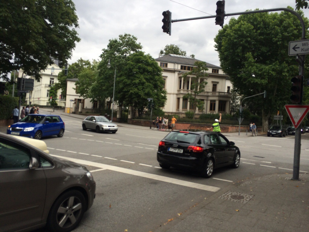 Wiesbaden, 14. Juli 2015 – Das sieht man immer seltener: Heute regelt zeitweise ein Stadtpolizist den Verkehr an der Ampel Bierstadter Straße/Ecke Frankfurter Straße. Grund: Ampel defekt. Während die Experten fleißig reparieren, zaubert der Stadt-Polizist sein Verkehrs-Ballett. Attraktion vor allem für kleine Verkehrsteilnehmer. Währt aber nicht lange – nur bis zum Ende der Ampel-Reparatur.