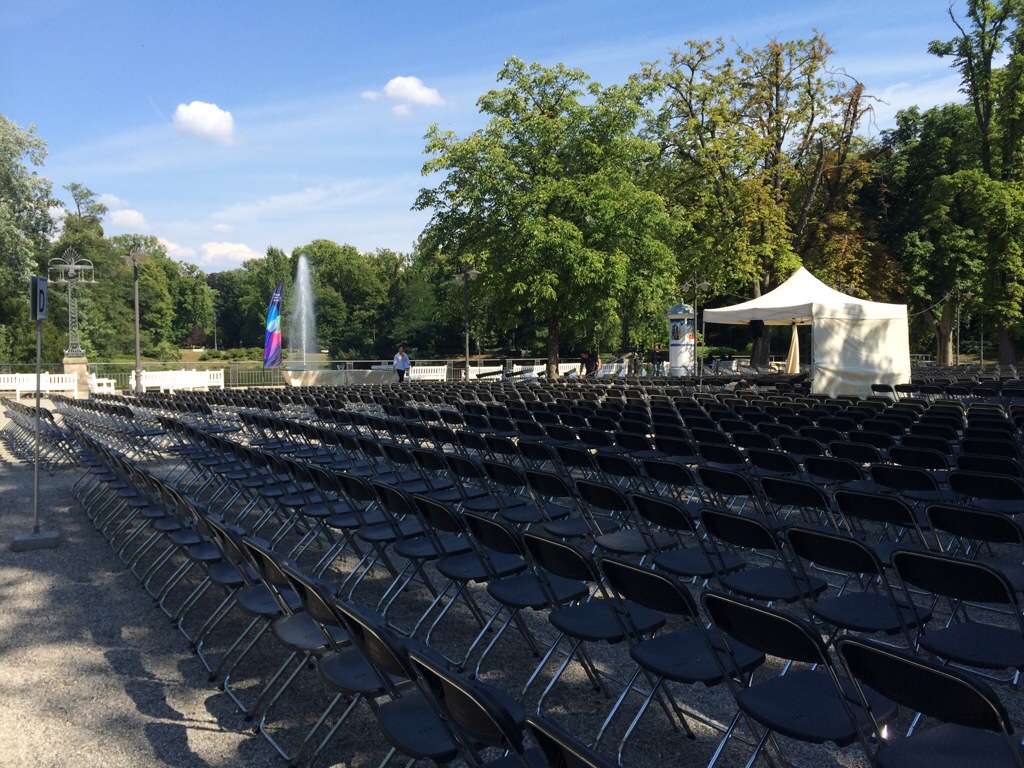 Wiesbaden, 1. August 2015 – Der Kurpark ein Stühle-Meer, die Konzertmuschel beleuchtet, die Technik aufgebaut: Alles ist gerüstet für eine tolle Soulnight heute Abend. Andrew Roachford (50, aus London) und Myles Sanko (34, aus Cambridge) und Bands spielen und singen ab 19 Uhr. Tickets gibt’s an der Abendkasse ab 18 Uhr für 21,30 Euro und 36,30 Euro.