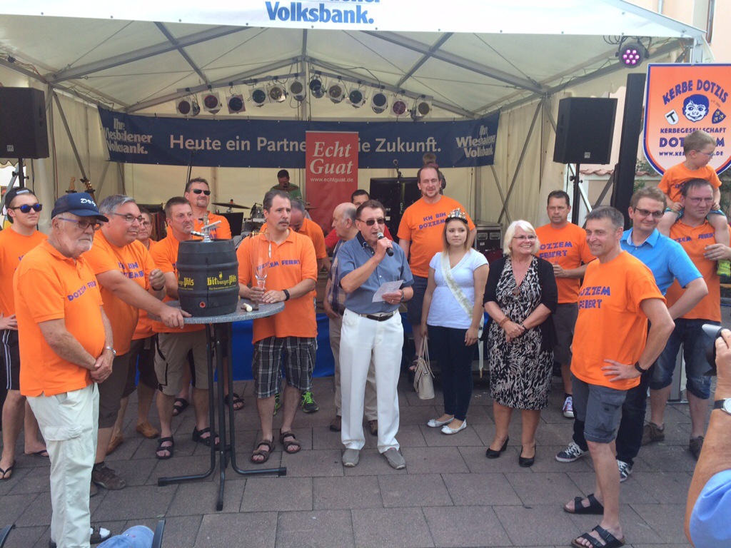 Dotzheims Ortsvorsteher Manfred Ernst lobte die Organisation der „Kerbe Dotzis“, erklärte: „Beinahe wäre die Kerb wegen der Straßen-Bauarbeiten ringsum ins Wasser gefallen“. Doch auch das konnte gelöst werden. Ergebnis: Essen, Trinken, Gemütlichkeit und Programm bis morgen Abend.