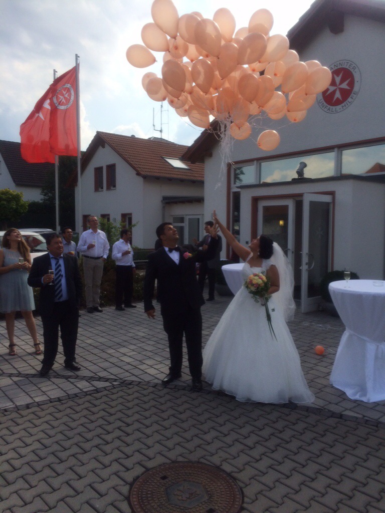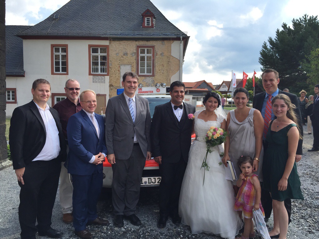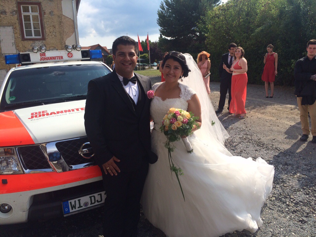 Wiesbaden, 10. August 2015 – Die Johanniter Wiesbaden kennen sich aus mit Rettungsdienst – und Herzklopfen: Am vergangenen Samstag zauberten die Retter Romantik pur bei der Traumhochzeit ihres Ausbildungsleiters und Lehr-Rettungsassistenten Evren Urel (bildet Sanitäter aus) mit der Leiterin der Jugendarbeit und Zuständigen für das Lacrima-Projekt (Trauerarbeit für Kinder) Paola Burgos-Urel. Die beiden hatten bei den Johannitern jeweils ihre Berufung gefunden – er zuerst, sie folgte ihm nach.