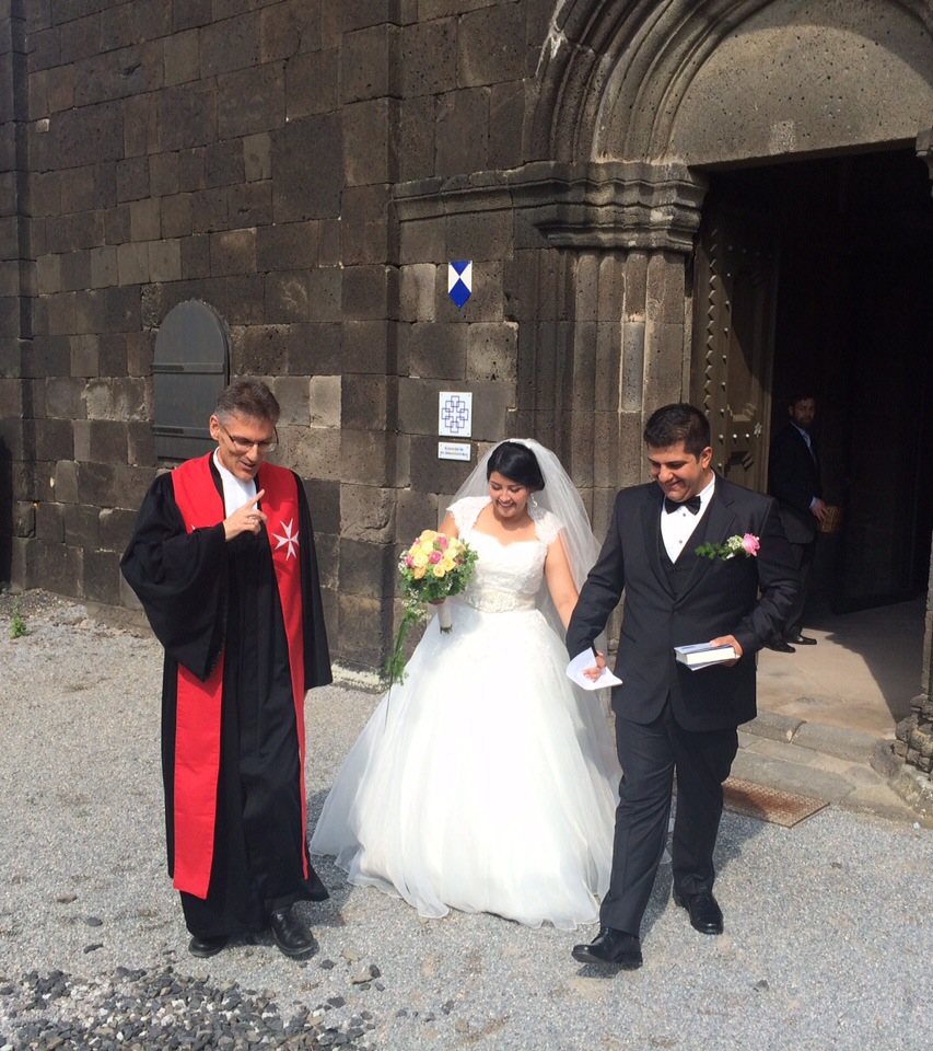 Jetzt wurde stilecht in der Johanniterkirche geheiratet: In der Ev. Komturkirche zu Nieder-Weisel, wo sich auch das Ordenshaus der Johanniter-Ritter befindet.