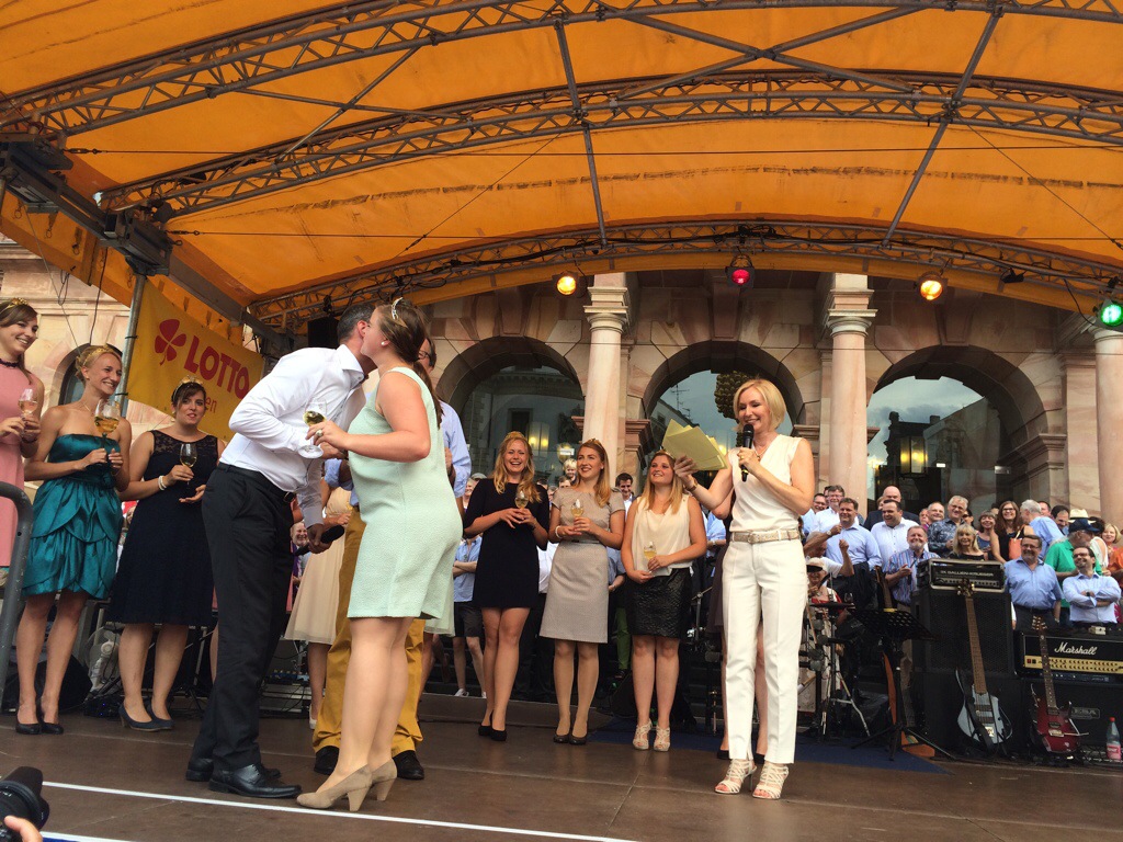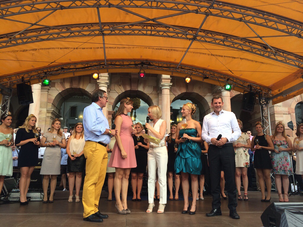 Wiesbaden, 14. August 2015 – Das Jubiläums-Weinfest hat begonnen: Die 40. Rheingauer Weinwoche wurde heute feierlich eröffnet. ZDF-Moderatorin Babette von Kienlin („Drehscheibe“) moderierte, Wirtschaftsdezernent