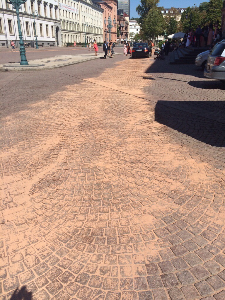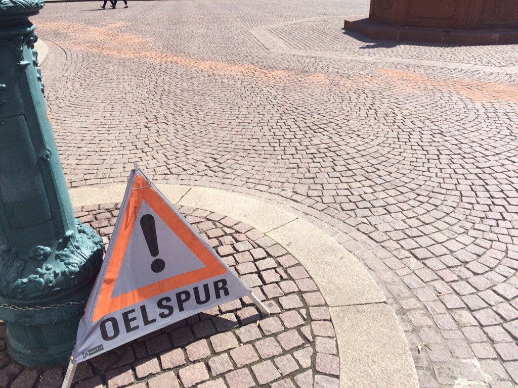 Wiesbaden, 31. August 2015 – Das Lauf-Event am Wochenende war schön (MEIN WIESBADEN berichtete), der Abbau der Stände hinterließ aber jetzt Spuren rund um das Rathaus: Ein Gabelstapler hatte Öl verloren, die Feuerwehr hat es heute umfangreich abgestreut, nächste Woche können die Entsorgungsbetriebe (ELW) alles abkehren. In vier Wochen, so heißt es auf Nachfrage von MEIN WIESBADEN bei der Stadt, wird dann feststehen, ob alles gut ist, oder es Schäden am Boden gegeben hat.
