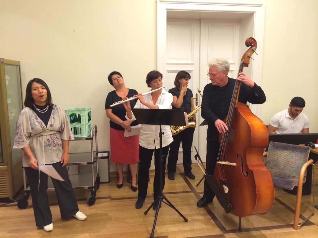 Beim kleinen Sektempfang im Anschluss spielte die Band Tandem Deutsch-International, mit VHS-Direktor Hartmut Boger am Kontrabass, iranische, japanische und armenische Lieder und alle sangen gemeinsam „Die Gedanken sind frei“. Alle Infos zum aktuellen Semesterangebot der VHS Wiesbaden gibt es online hier (klick).