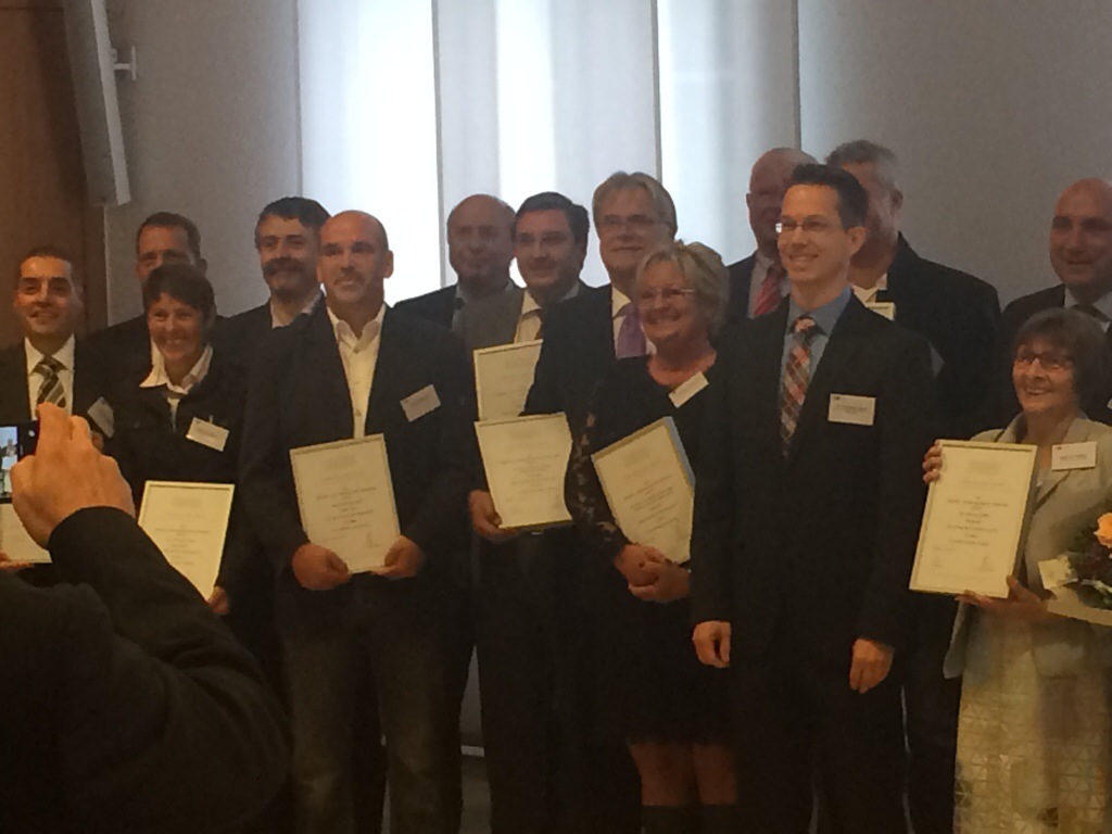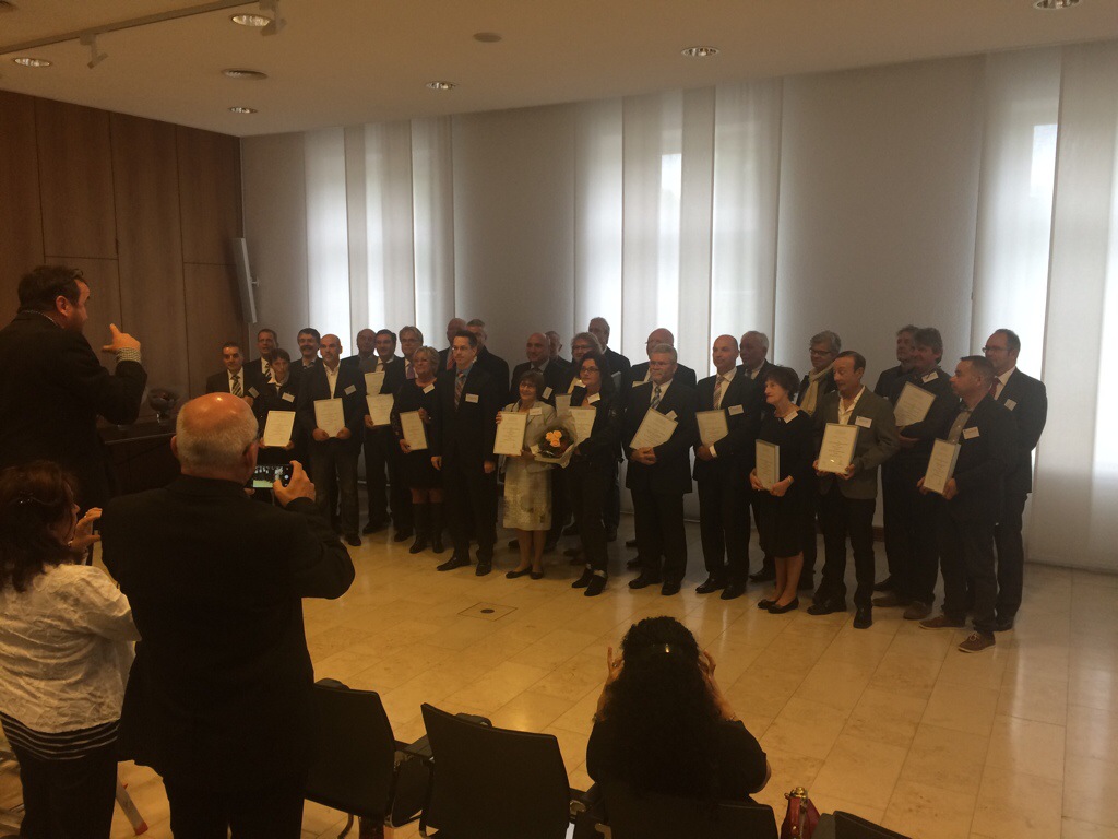 Wiesbaden, 15. September 2015 – IHK-Präsident Dr. Christian Gastl (Foto oben 2.v.r.) hat heute in einer Feierstunde 28 Unternehmen anlässlich ihres 25-jährigen Jubiläums ausgezeichnet – plus fünf die nicht teilnehmen konnten – macht das 825 Jahre „unternehmerische Leistung“, wie es im Urkunden-Text heißt. Unter den Jubilaren sind 21 aus Wiesbaden, 11 aus dem Rheingau-Taunus-Kreis und 1 aus Hochheim am Main. Gastl Überreichte persönlich die Urkunden, dankte für das Engagement, wünschte alles Gute für die nächsten 25 Jahre.