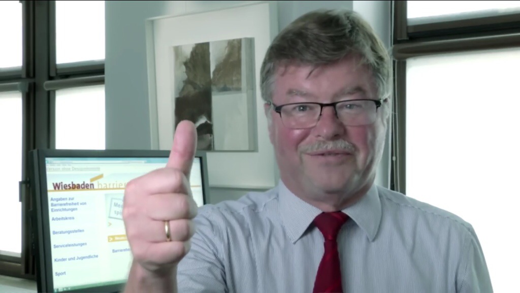 Wiesbaden, 16. September 2015 – Sprechende Ampeln, Aufzüge für Rollstuhlfahrer, Rampen an Stadtbussen und vieles mehr: Wiesbaden will’s jetzt wissen in Sachen Barrierefreiheit und bewirbt sich um den „Access City Award 2016“. Die Bewerbung wird durch einen Film begleitet, der viele Aspekte der Barrierefreiheit in Wiesbaden erklärt und im Detail zeigt und Beteiligte am Projekt (z.B. Bürgermeister Arno Goßmann, Foto oben) zu Wort kommen lässt.