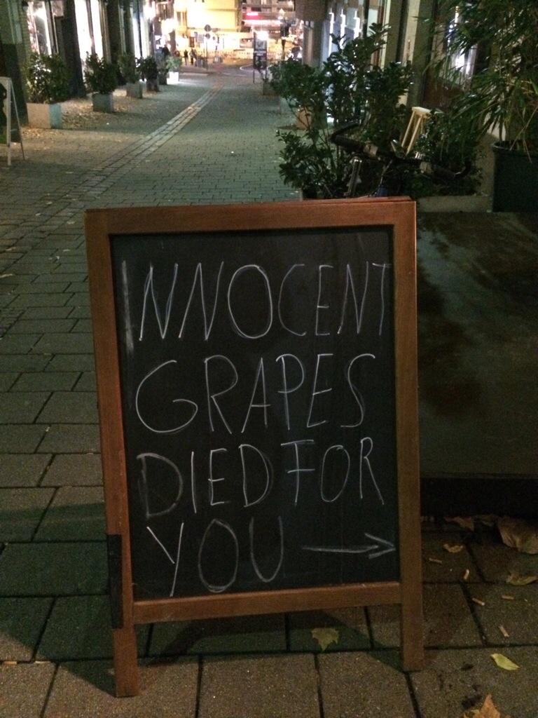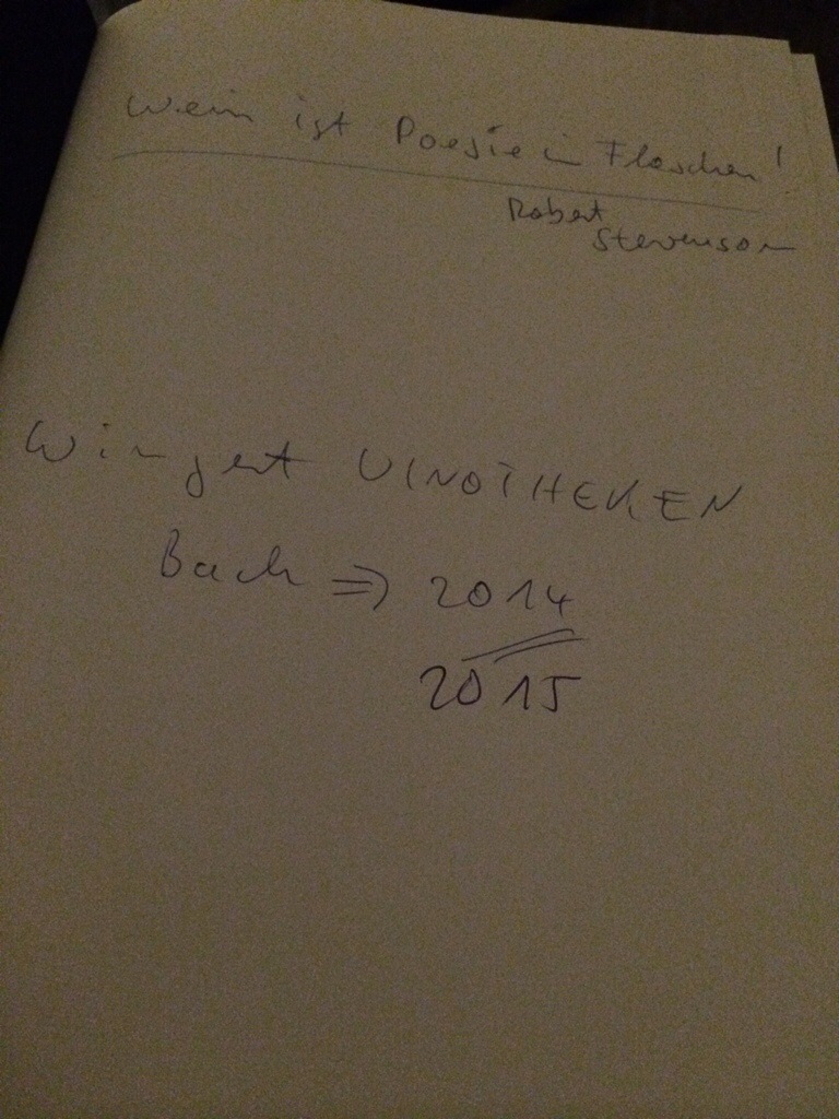 Wiesbaden, 29. Oktober 2015 – In der Wingert Vinothek ist noch ein Plätzchen frei: Am Fenster, wenn man Glück hat, im tiefen Sessel. Den Wein gibt’s beim Chef: Holger Schwedler (Foto oben) serviert hier dem halben Staatstheater und lieben Stammgästen Roten und Weißen. 4 Euro das Glas. Man schart sich um seine Lego-Theke (aus Lego-Steinen selbst gebaut), sitzt auf der Bank gepolstert mit Kaffeesäcken, schaut ins Weinkisten-Regal. Rheingauer steht da drin und Leckeres von weiter her. Nächste Woche Freitag gibt’s Raclette (ab 18 Uhr, der „Hamlet“ vom Staatstheater schmiert die Brote), samstags ab 13 Uhr ist die Ü70-Runde da. Chef Holger schmunzelt: „Die sind böse, wenn nicht um ein Uhr die Tür offen ist“. Das Essen bringt man selber mit: „Ich darf hier nur ausschenken“. Entschleunigung für den PR-Mann, der früher große Etats betreute und heute in der Wein-Hochschule Geisenheim lehrt. Neuestes Projekt mit den Studenten: Einen Wein von der Zielgruppe her vermarkten. „Nächstes Jahr kommt er raus“, kündigt Schwedler an. Bis dahin heißt es warten. Vielleicht in den lila Sesseln aus der Alten Oper Frankfurt rechts im Raum. Mit einem Rüdesheimer „49Point9“ im Glas. „Er ist trocken, hat Mineralität, ist beerig, naturnah, wie man sich eine Traube vorstellt“. 8 Euro kostet die Flasche. Man kann sie auch in Lego zahlen: „Mir fehlen noch etwa acht Kilo Steine für die Theke“, sagt der Chef. Der Flaschen-Himmel wartet auf dem „Stillen Örtchen“, von Schwedler selbst gezimmert. Im Gastraum herrscht Gemütlichkeit. Spinnweben gehören dazu. Wer lieb ist, darf sich ins Vinothek-Buch eintragen, ein paar lokale Promis stehen schon drin. Neugierig? Adresse: Obere Webergasse 50. Oder online: http://www.vinothek-rheingau.de