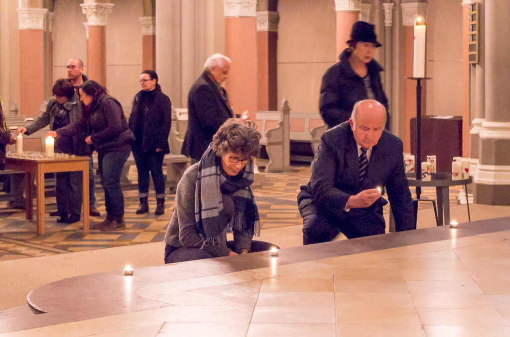 Symbolisch stellten die Besucher Kerzen zum Gedenken an die Opfer und Hinterbliebenen der Terroranschläge in Paris auf den Altarstufen der Marktkirche auf – Ausdruck des Mitgefühls und Zeichen gegen Terror und Gewalt.