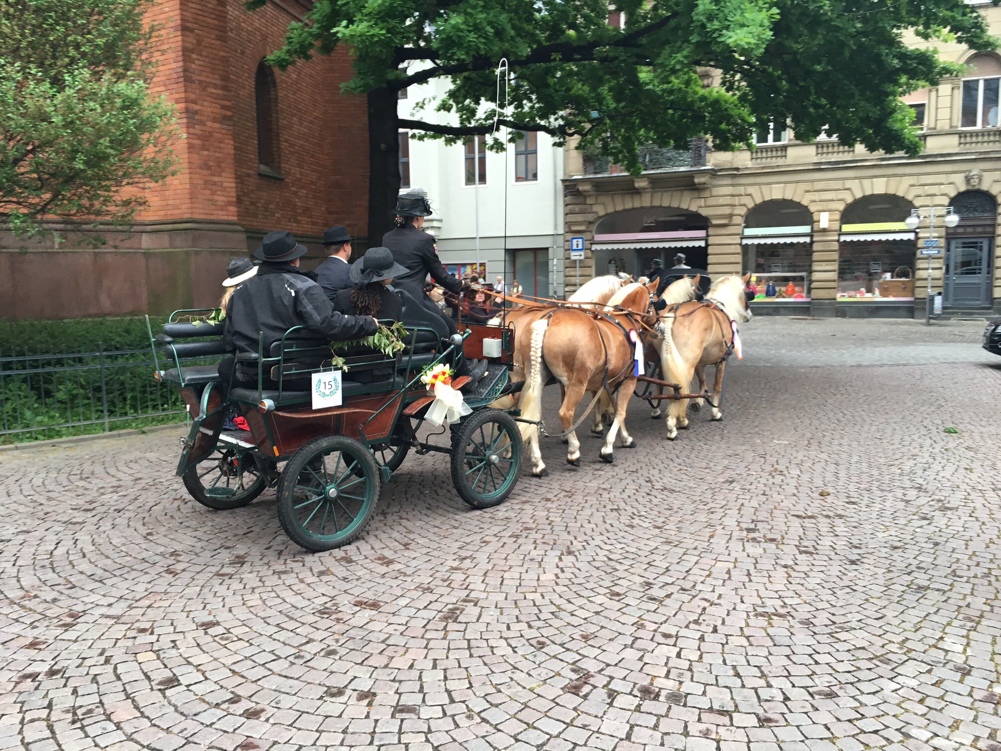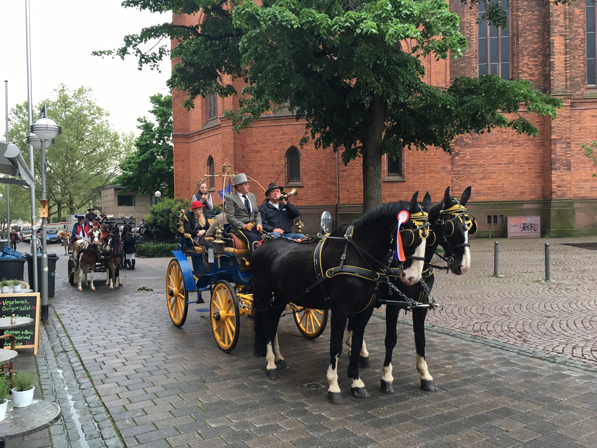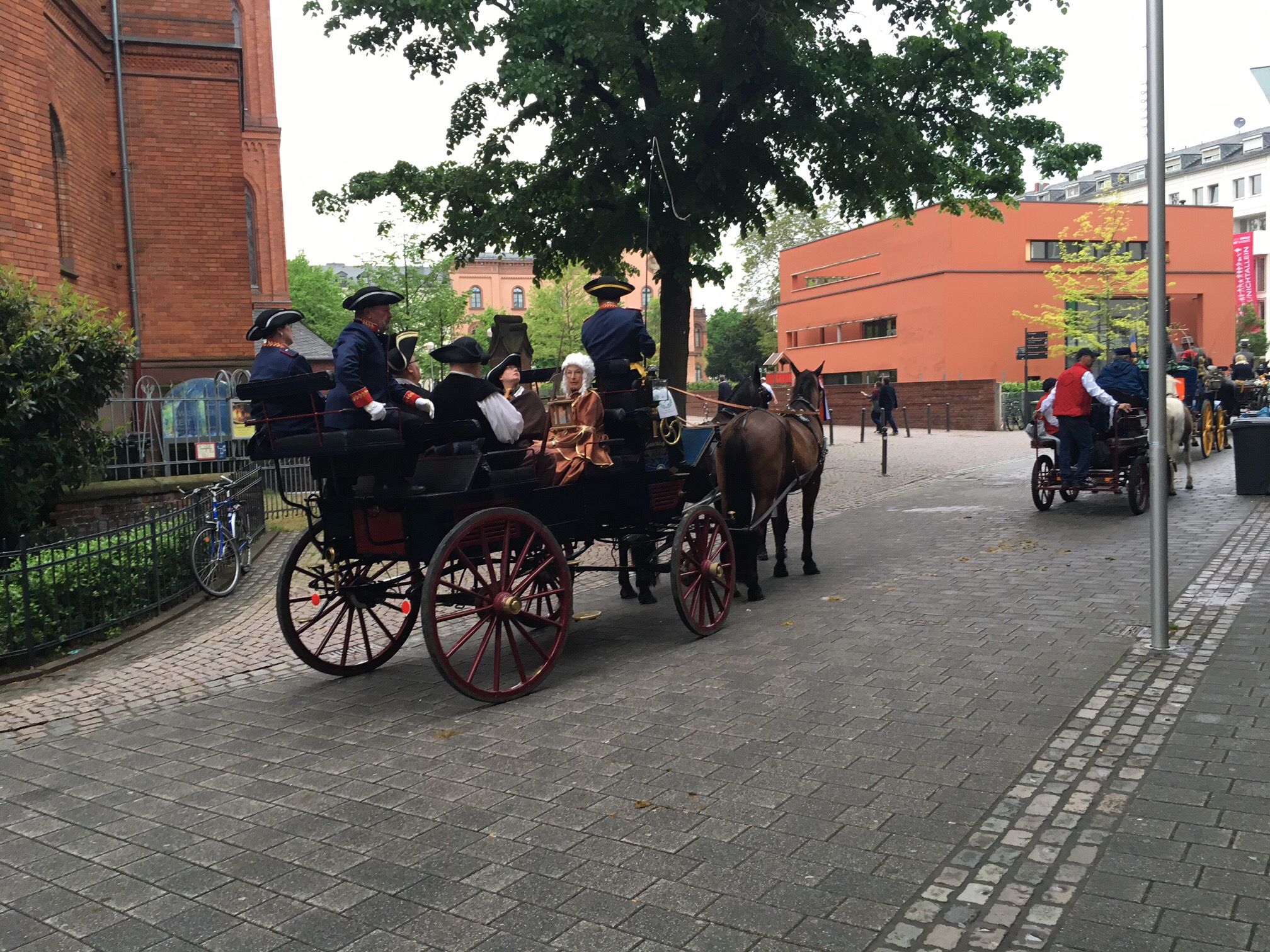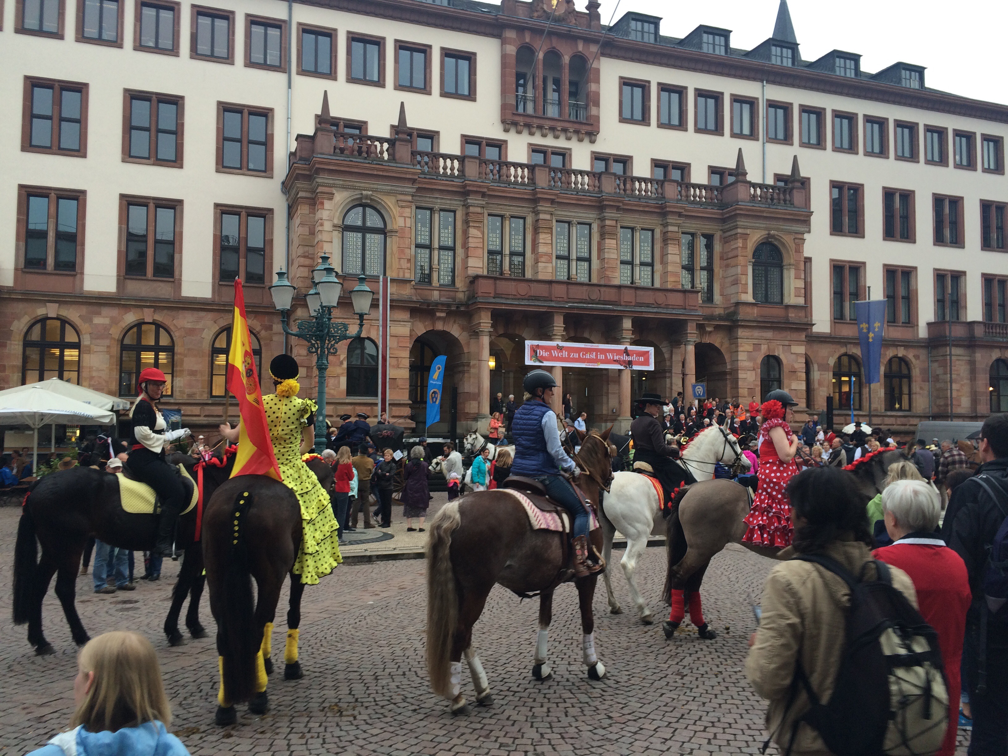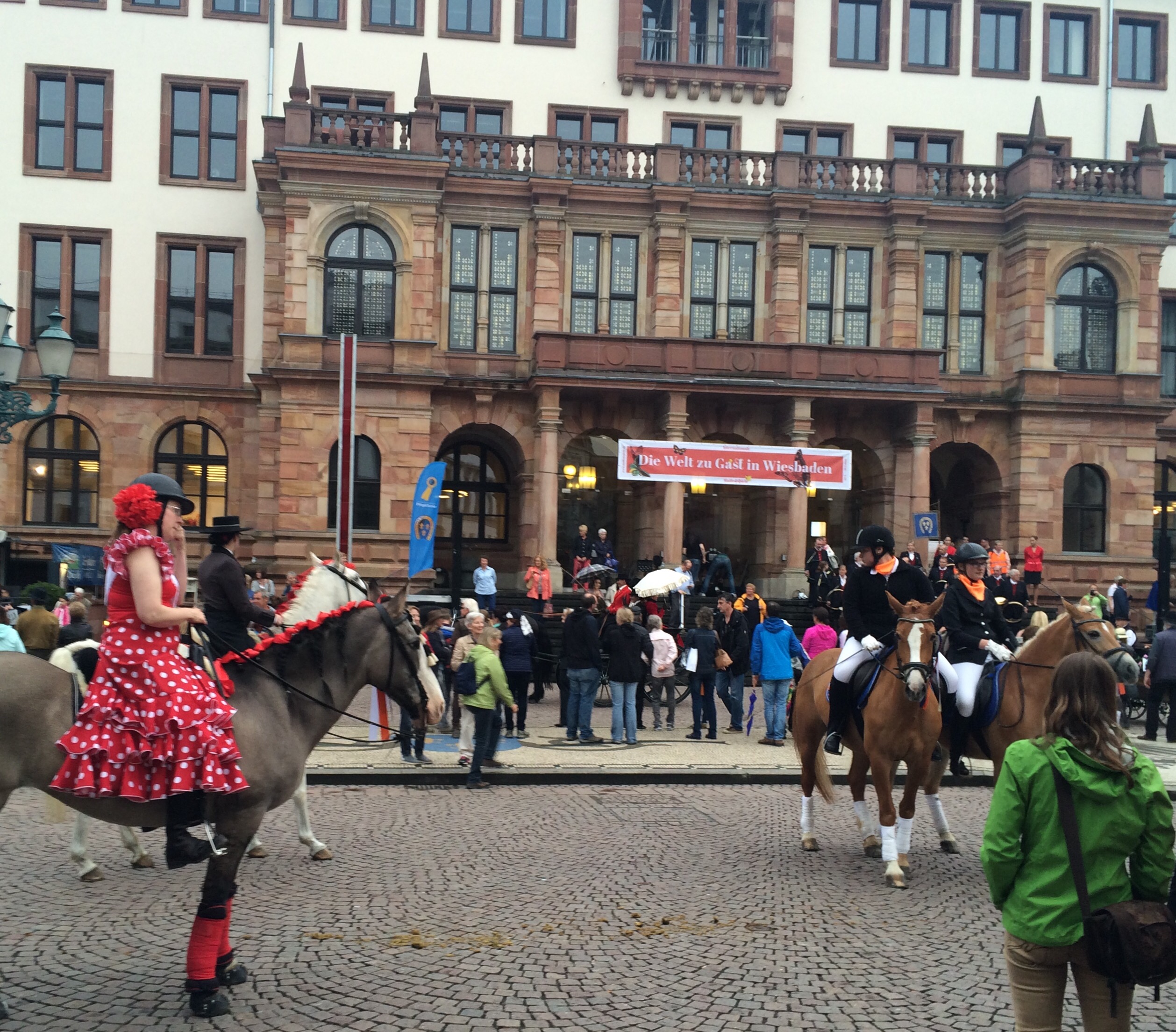 Wiesbaden, 10. Mai 2016 – Heute, am Dienstag vor Pfingsten, war es wieder soweit: Reiter mit und ohne prächtigen Kostümen, Pferdekutschen, Musik, Sekt und Jagdhornbläser rund ums Rathaus und in der Wilhelmstraße läuteten mit dem traditionellen Kutschenkorso das Internationale Wiesbadener Pfingstturnier ein. Diesen Freitag geht’s los mit der Pferdenacht, das Turnier dauert bis kommenden Montag, alle Infos und Tickets gibt es hier – klick.