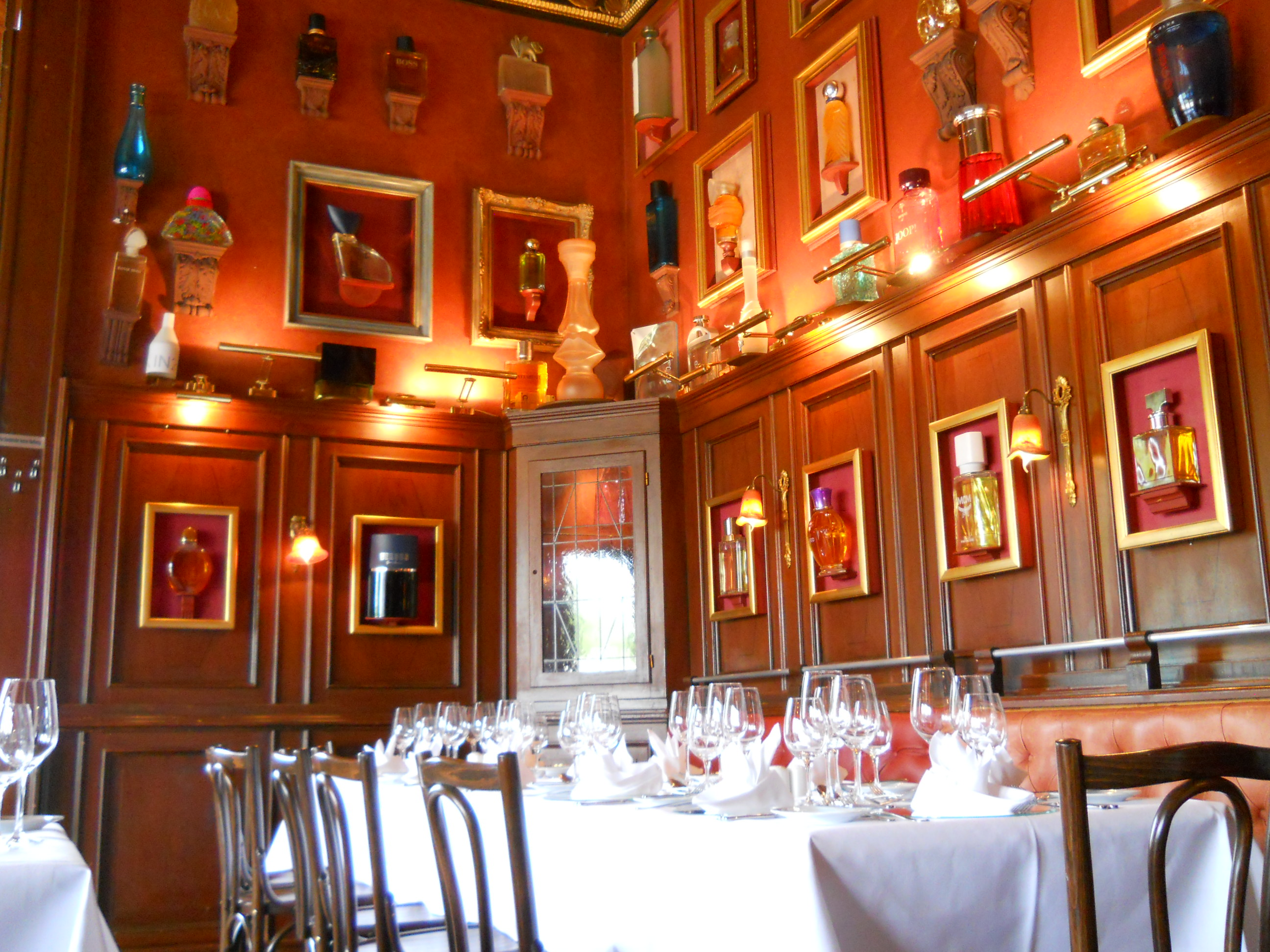 178 Edel-Parfum-Flakons gaben ihm den Namen: Der Salon des Flacons im Käfer’s Bistro im Kurhaus Foto: Peter Schmidt