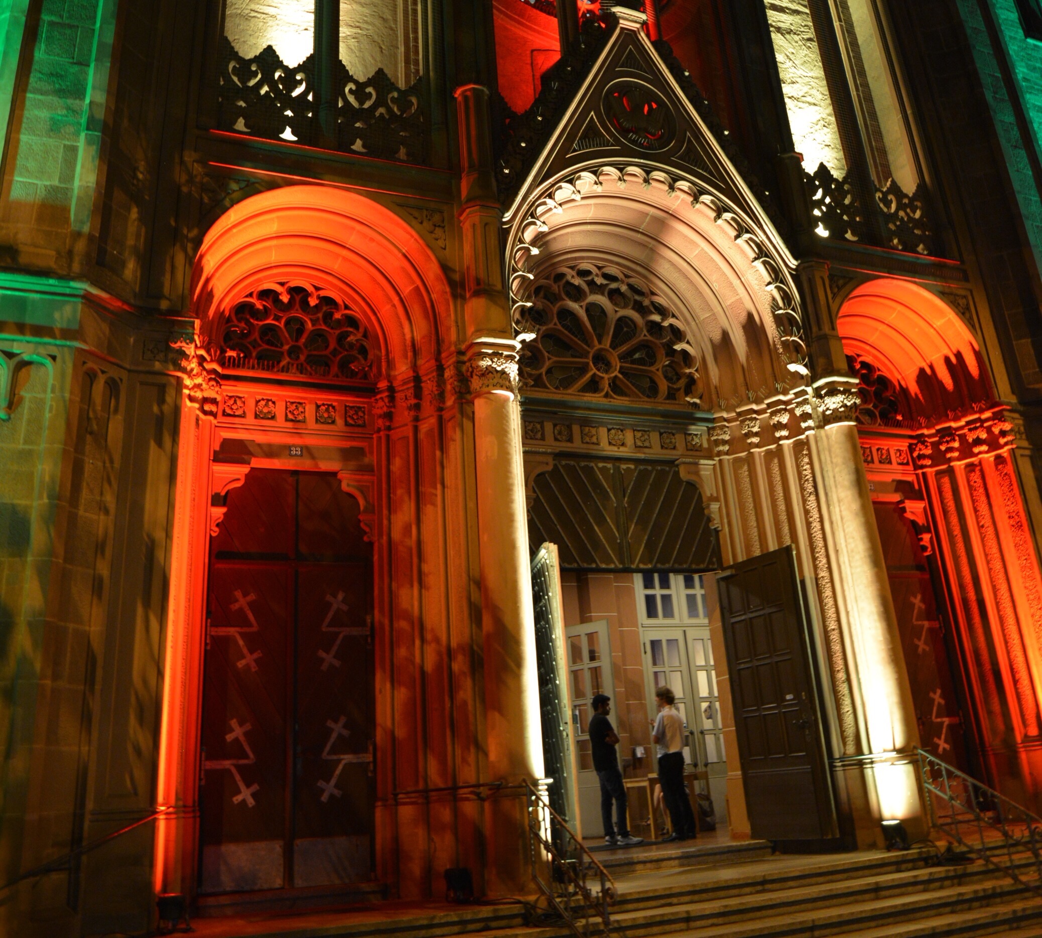 In der Anglikanischen Kirche St. Augustine konnten die Kirchennachtbesucher die bizarre Kunstperformance „Die Beerdigung“ in Kooperation mit der Biennale Wiesbaden erleben: In der vollbesetzten Kirche wurde in einem inszenierten Trauergottesdienst „Unsere Unschuld“ zu Grabe getragen.