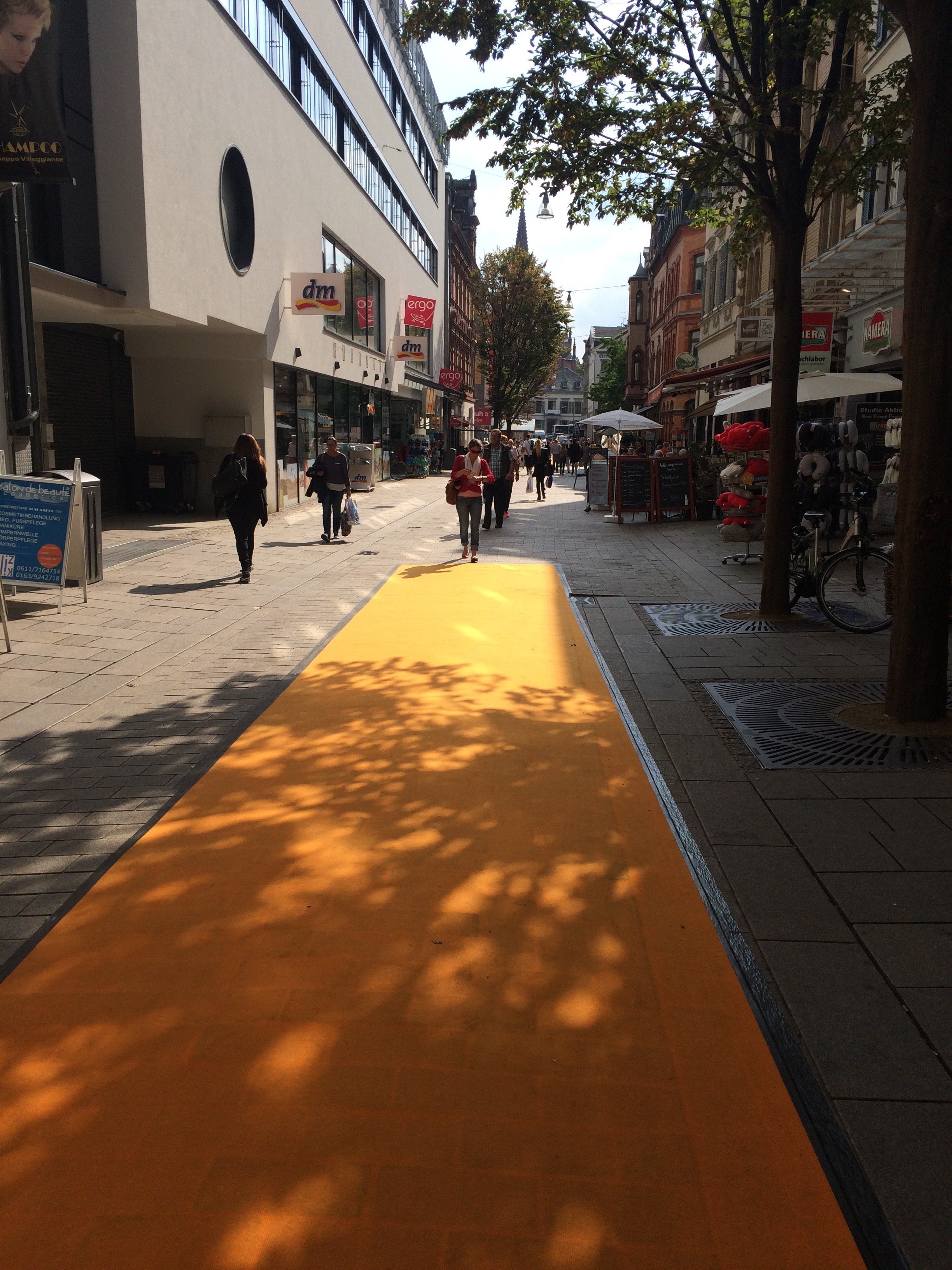 Orangefarbene Teppiche führen die Stadtfest-Besucher zu verschiedenen Kunstwerken und Veranstaltungsorten in der City, dazu gibt’s einen Herbstmarkt mit 60 Ständen in der Fußgängerzone und am Mauritiusplatz, eine Automobilausstellung auf dem Schlossplatz und am Warmen Damm findet das Erntedankfest statt. Außerdem gibt’s heute am Kranzplatz eine Feier zu „Hessen wird 70“ mit großem Kinder- und Familienfest. Am Dern’schen Gelände lockt Musik, in der Neugasse buntes Programm mit Verlosungen, Zauberei, Frisuren- und Modenschau und in der Wilhelmstraße 42 bestreiten die Bundesliga-Damen des VC Wiesbaden eine Fashion-Show.