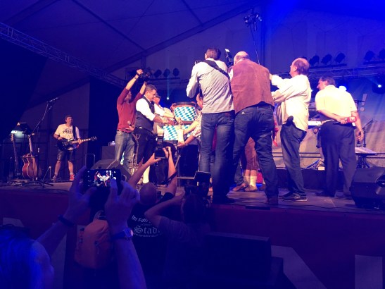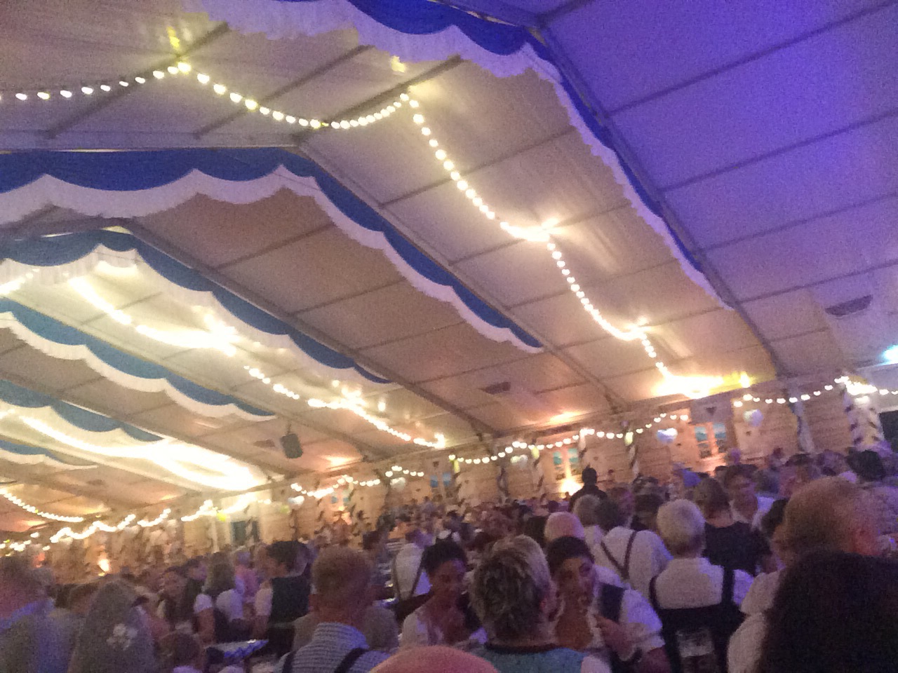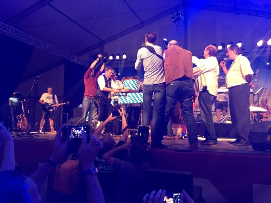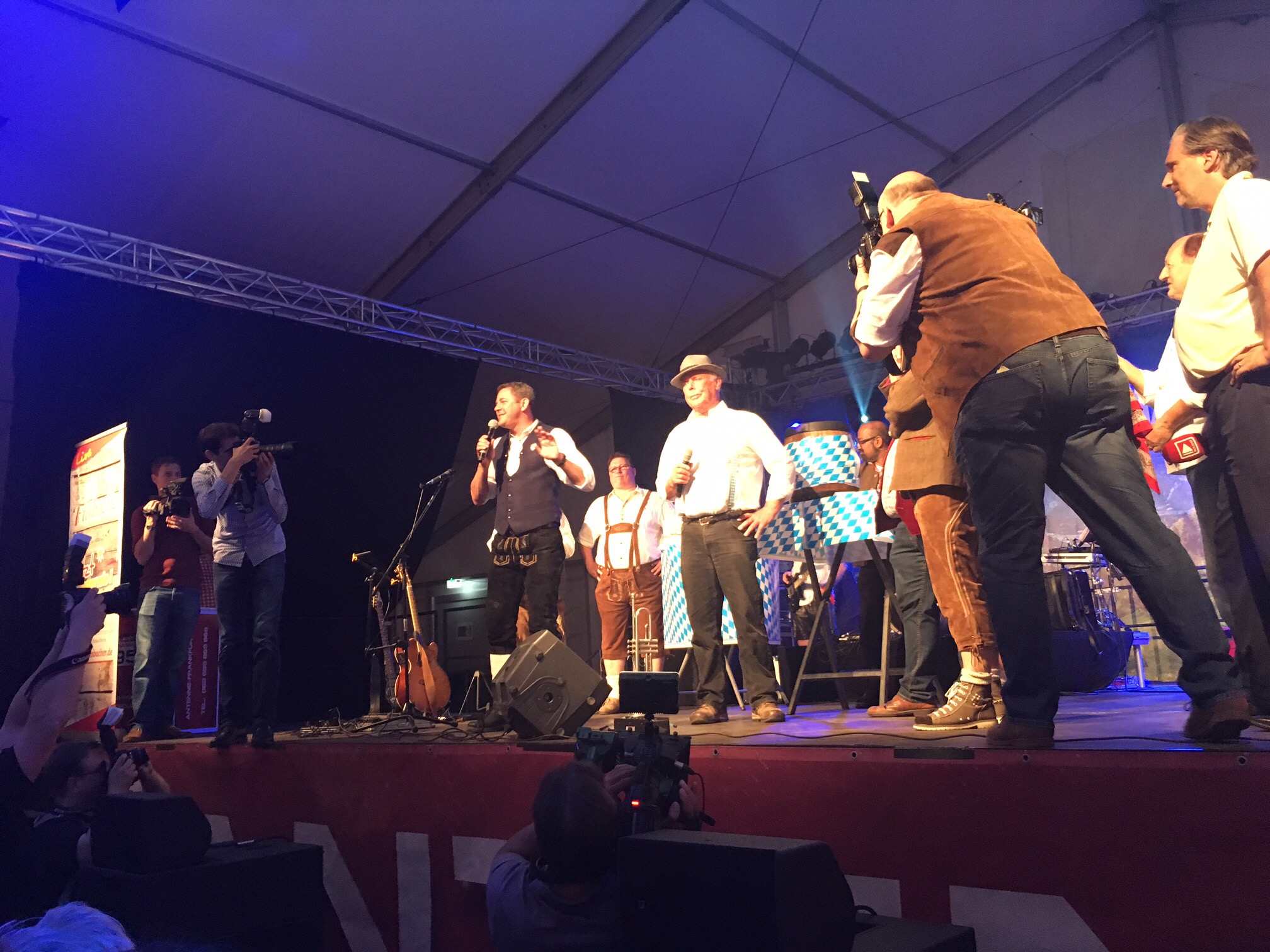 Die „Filsbacher“ spielen auf, das Festzelt bebt, Promis und Gäste tanzen bunt gemischt in Dirndl und Lederhosen auf den Bänken.