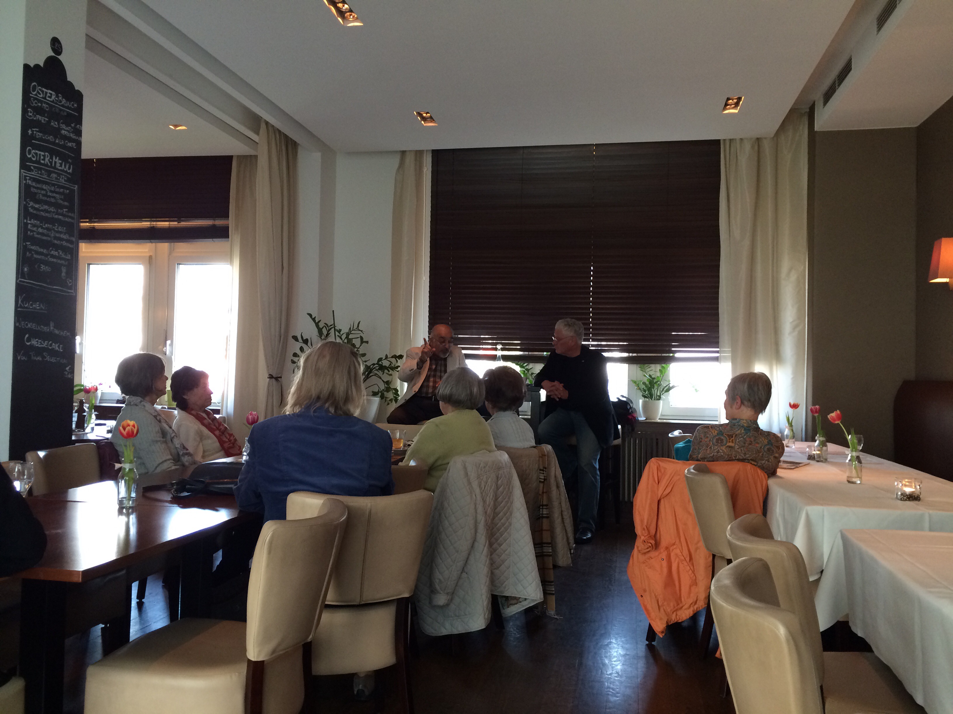 Wiesbaden, 8. April 2017 – Im Erzählcafé der Volkshochschule Wiesbaden wurden heute im Bistro Leib & Seele ganz persönliche (Stadt)-Geschichte(n) charmant erzählt von Ebrahim („Ebby“) Memar-Pouri, einfühlsam moderiert vom ehemaligen vhs-Direktor Hartmut Boger (63). Wie „Ebby“ (71) aus dem Iran über Umwege nach Wiesbaden reiste, wie er im Januar 1969 im Wiesbadener Westend landete und wie er zu seinem Ballett-Artikel-Laden kam („ich hatte von meiner Mutter nähen gelernt, habe sogar Tutus selbst gemacht“), kam ebenso zur Sprache, wie seine 20 Jahre im Ausländerbeirat der Stadt und dass er als „inaktiver“ Muslim auch mal Schweinefleisch isst („aber meine Mutter weiß nichts davon“).