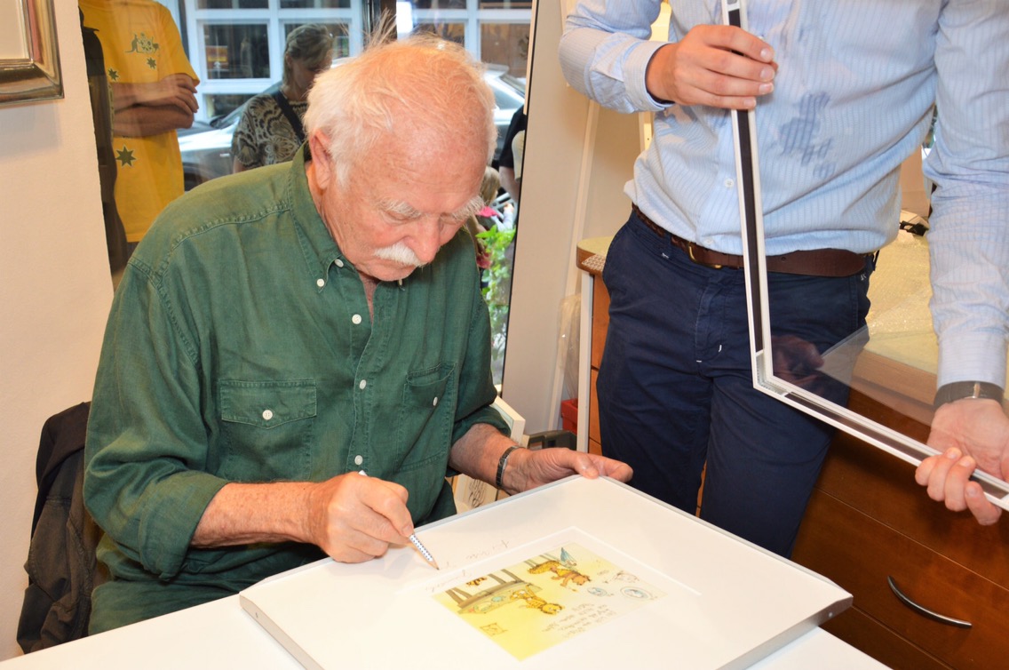 Bär, Schnuddel und Günther Kastenfrosch – viele liebenswerte Figuren, hat Janosch in seinen fantasievollen Geschichten zum Leben erweckt. Als einer der bedeutendsten Kinderbuchautoren und -Illustratoren des 20. Jahrhunderts prägte Janosch Generationen von Kindern und Erwachsenen mit seinen humorvollen und gesellschaftskritischen Werken. Heute ab 18 Uhr kann man ihn und seine Kunst live in der Art Gallery im der Häfnergasse erleben – Eintritt frei!