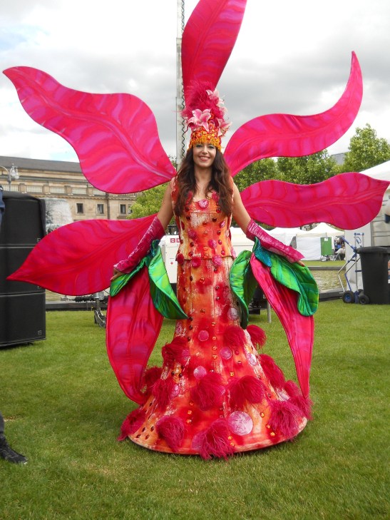 Anna Möntmann (Foto r.) ist Kostümkünstlerin. Spezialität: Costume Perfomance Art. Sie wurde in den 80er Jahren mit ihren Walking-Acts von Hans-Peter Wodarz zum Theatrium geholt. Bis zum Jahr 2007 war sie mit ihren phantasievollen Kostümen fester Bestandteil des Theatriums – dann kam die Krankheit, sie hat sie besiegt. Jetzt haben Kurhaus-Chef Martin Michel und Event-Experte Holger Helmiss Anna zum Jubiläum wieder in ihr Theatrium geholt. Auf dem Foto oben neben Anna Möntmann: Model Franziska im Kostüm mit Lilie, welches eigens für das Fest entworfen wurde.