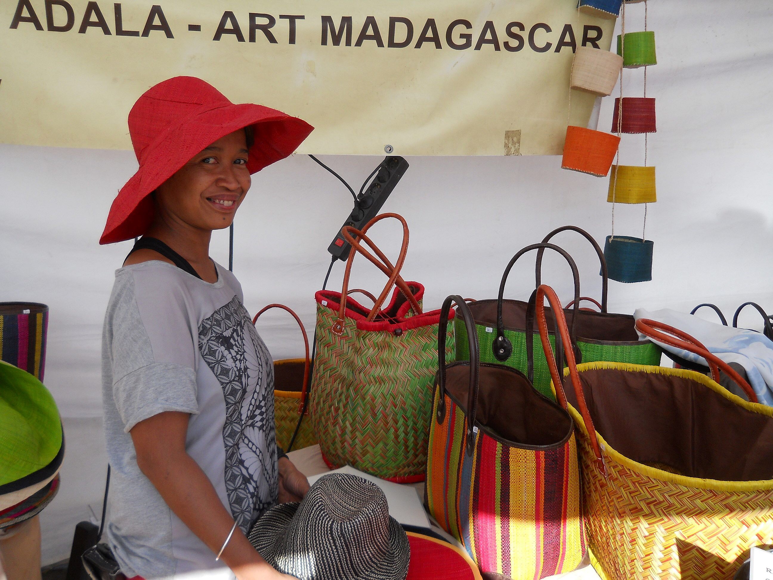 Zum ersten Mal beim Kunsthandwerkermarkt dabei ist Vanessa Ranaivo aus Madagaskar. Sie bietet Kunstgewerbe, Hüte und Taschen an.