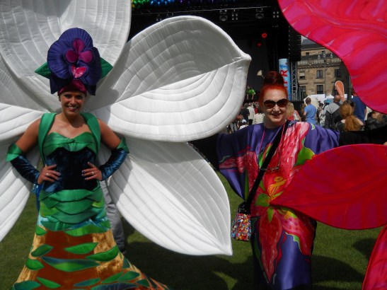 Anna Möntmann (Foto r.) ist Kostümkünstlerin. Spezialität: Costume Perfomance Art. Sie wurde in den 80er Jahren mit ihren Walking-Acts von Hans-Peter Wodarz zum Theatrium geholt. Bis zum Jahr 2007 war sie mit ihren phantasievollen Kostümen fester Bestandteil des Theatriums – dann kam die Krankheit, sie hat sie besiegt. Jetzt haben Kurhaus-Chef Martin Michel und Event-Experte Holger Helmiss Anna zum Jubiläum wieder in ihr Theatrium geholt. Auf dem Foto oben neben Anna Möntmann: Model Franziska im Kostüm mit Lilie, welches eigens für das Fest entworfen wurde.
