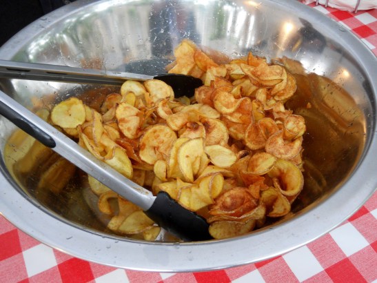 Frische Kartoffel-Chips sind der Renner, werden an vielen Ständen angeboten: Portion für 3,50 Euro.