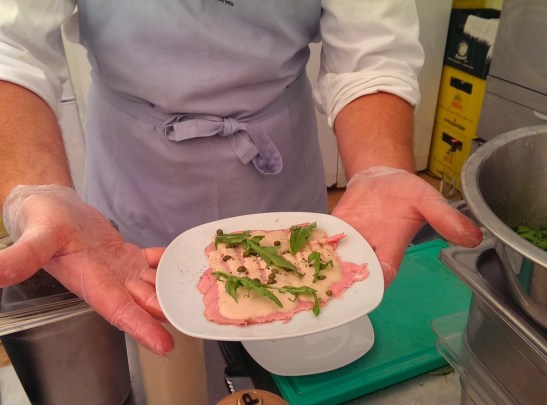 Nicht nur am Nassauer Hof werden Feinschmecker fündig auch am Bowling Green beim Stand des Restaurants Martino Kitchen gibt es z.B. Vitello Tonnato, die Portion für 9,90 Euro.