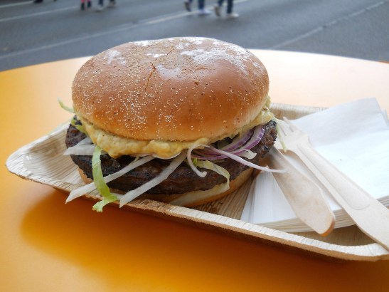 Auch fein: Entenburger vom Sternekoch – Ente Sterne-Koch Michael Kammermeier bietet einen „Entenburger“ mit Bananen-Chutney, Bacon, Eisbergsalat und roten Zwiebeln für 8 Euro an.