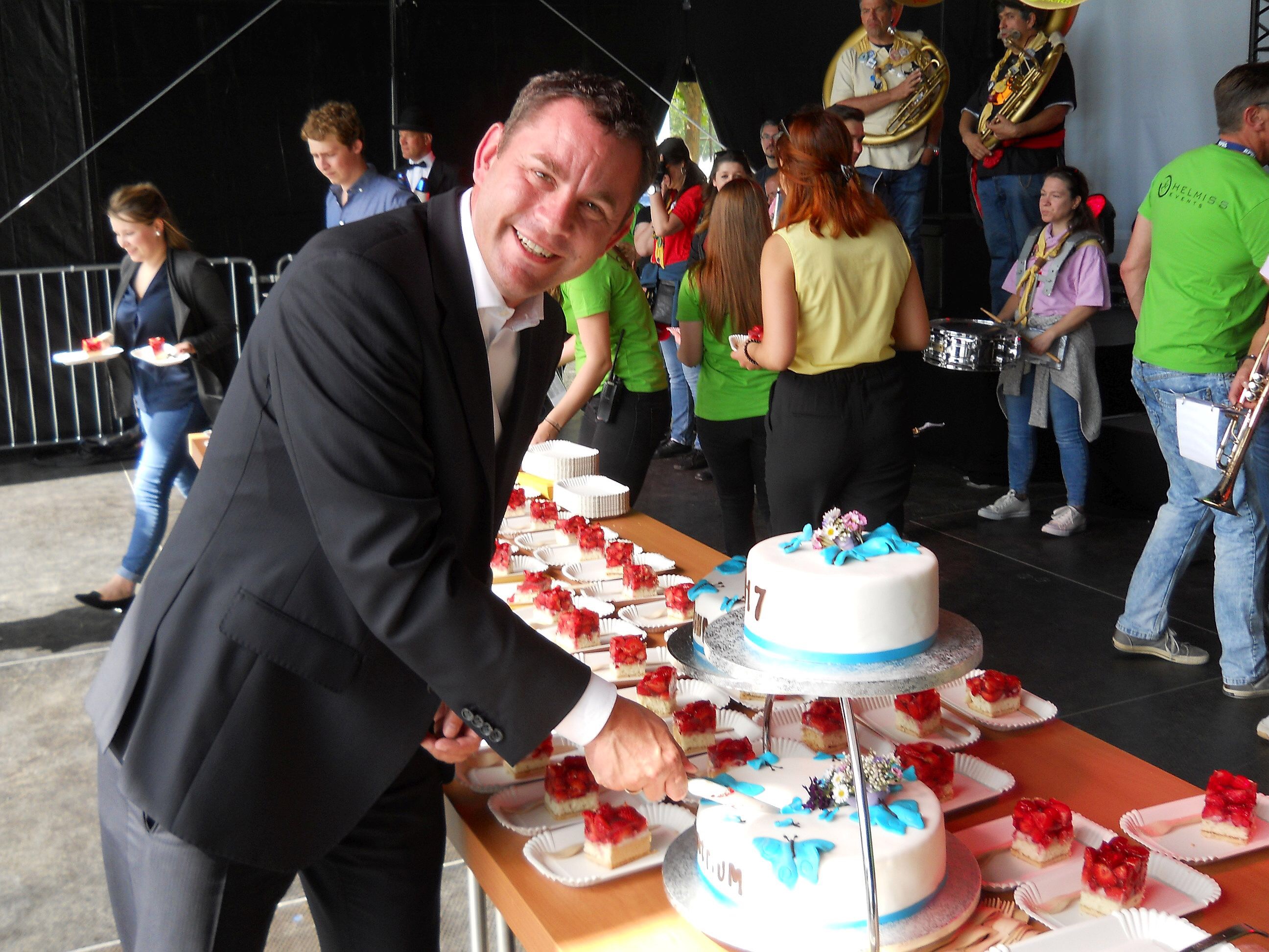 OB Sven Gerich (SPD) schnitt gestern zur offiziellen Eröffnung um 16 Uhr die Jubiläumstorte an
